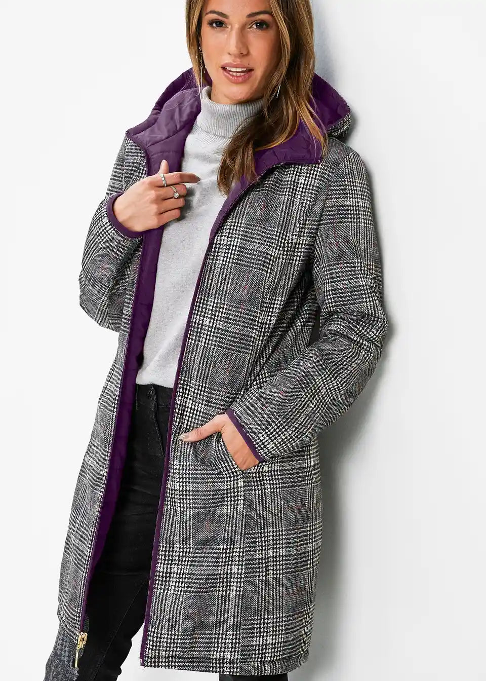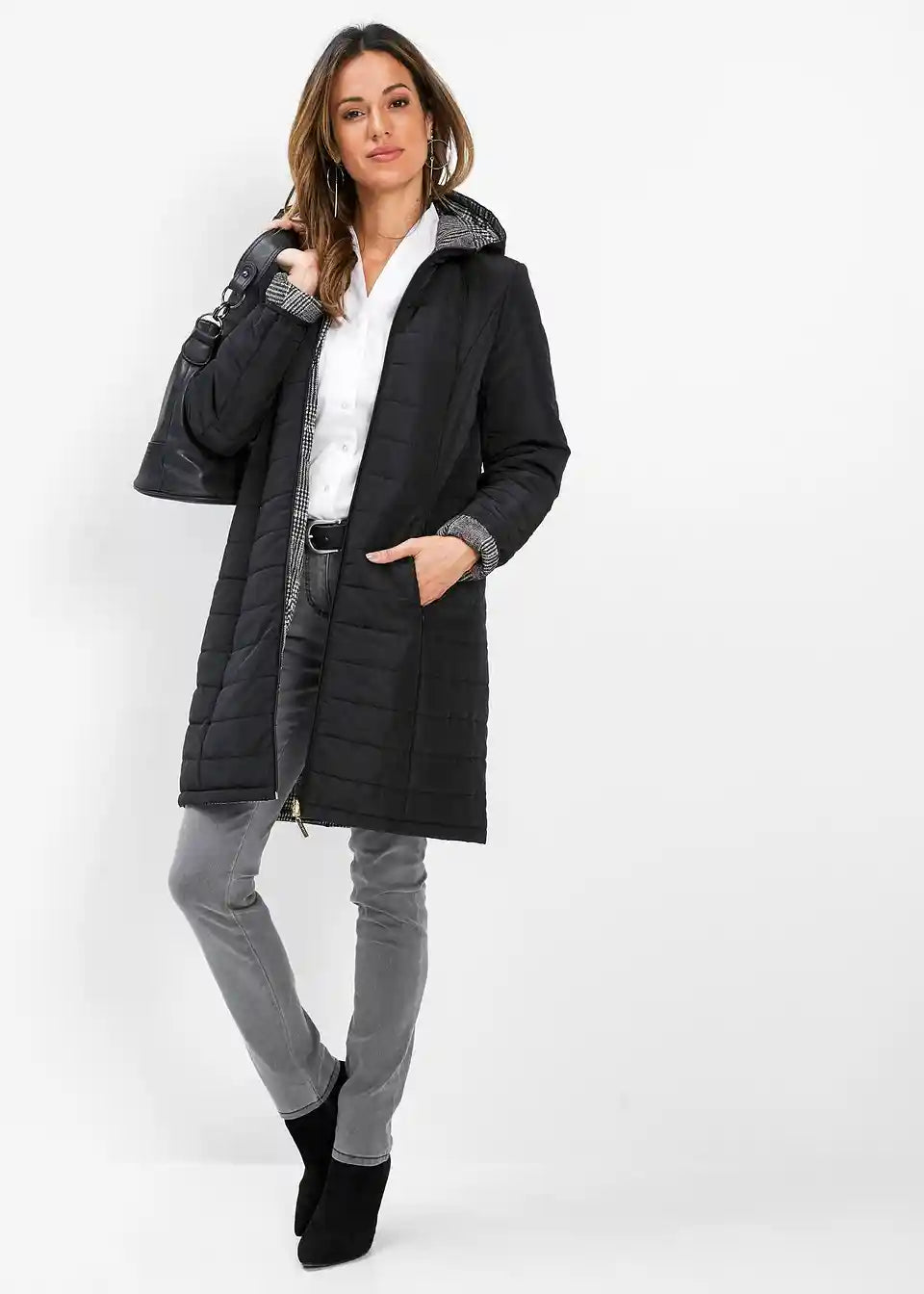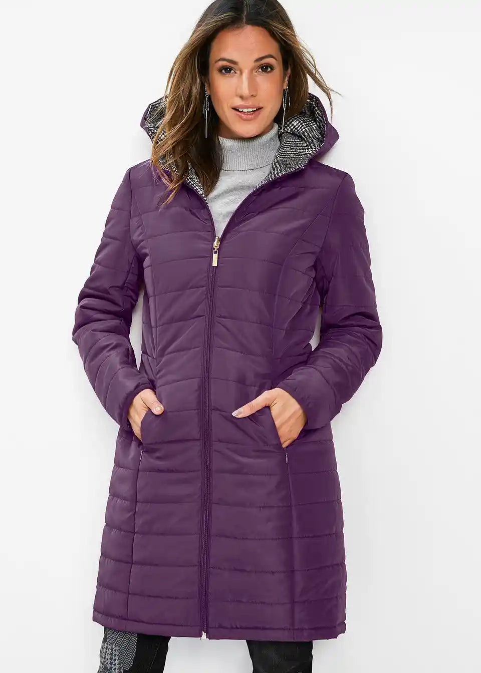 Brezčasen prešiti plašč za obe strani, dolžina cca. 90 cm (št. 42), primeren za strojno pranje,