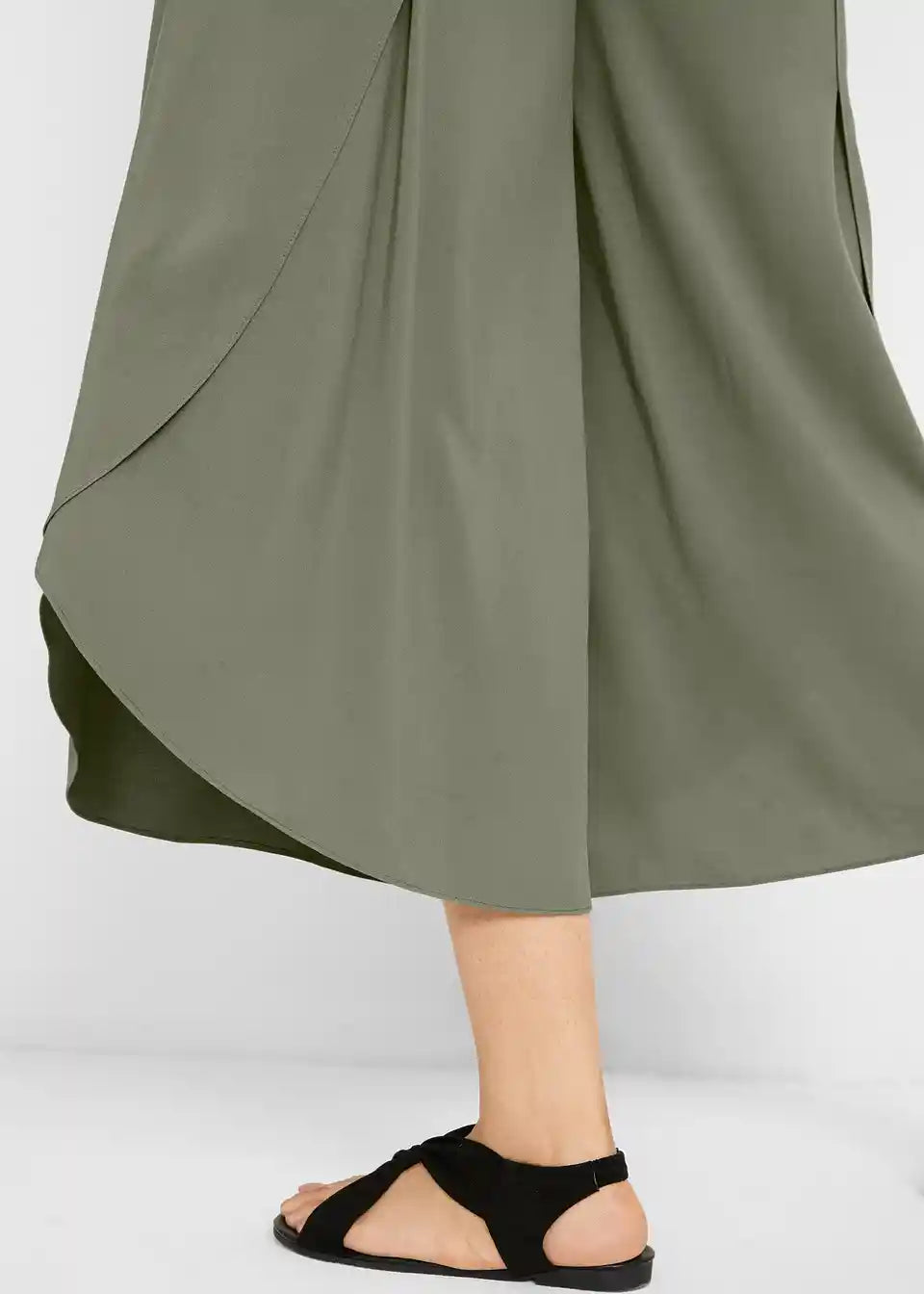 Stilska culotte hlača z rahlo padajočim materialom in širokim krojem