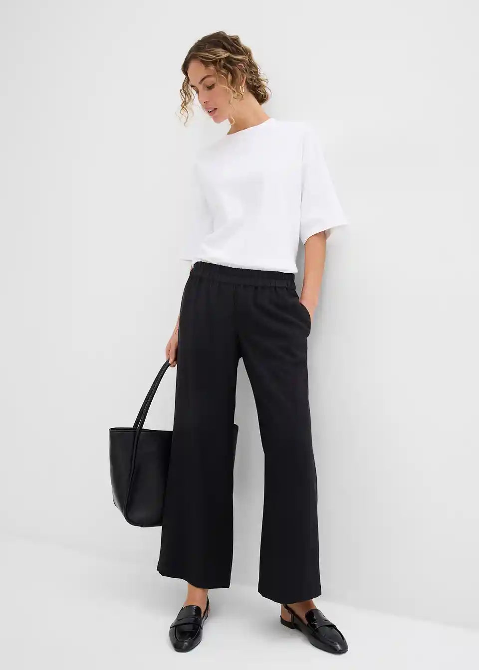Ohlapno krojene hlače iz tkanine z udobnim pasom