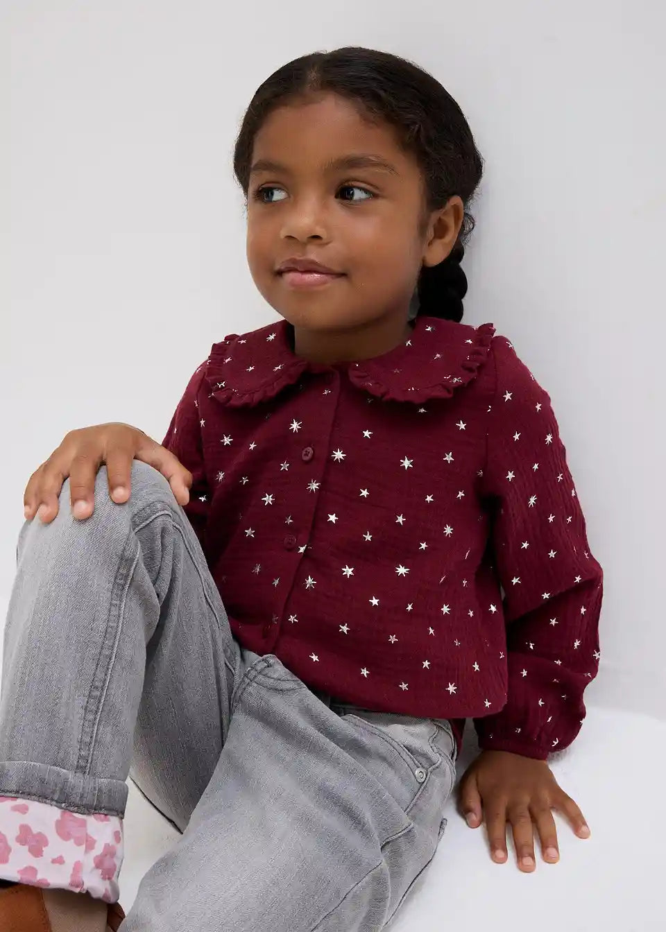 Ljubka dekliška musselin bluza s čudovitim ovratnikom
