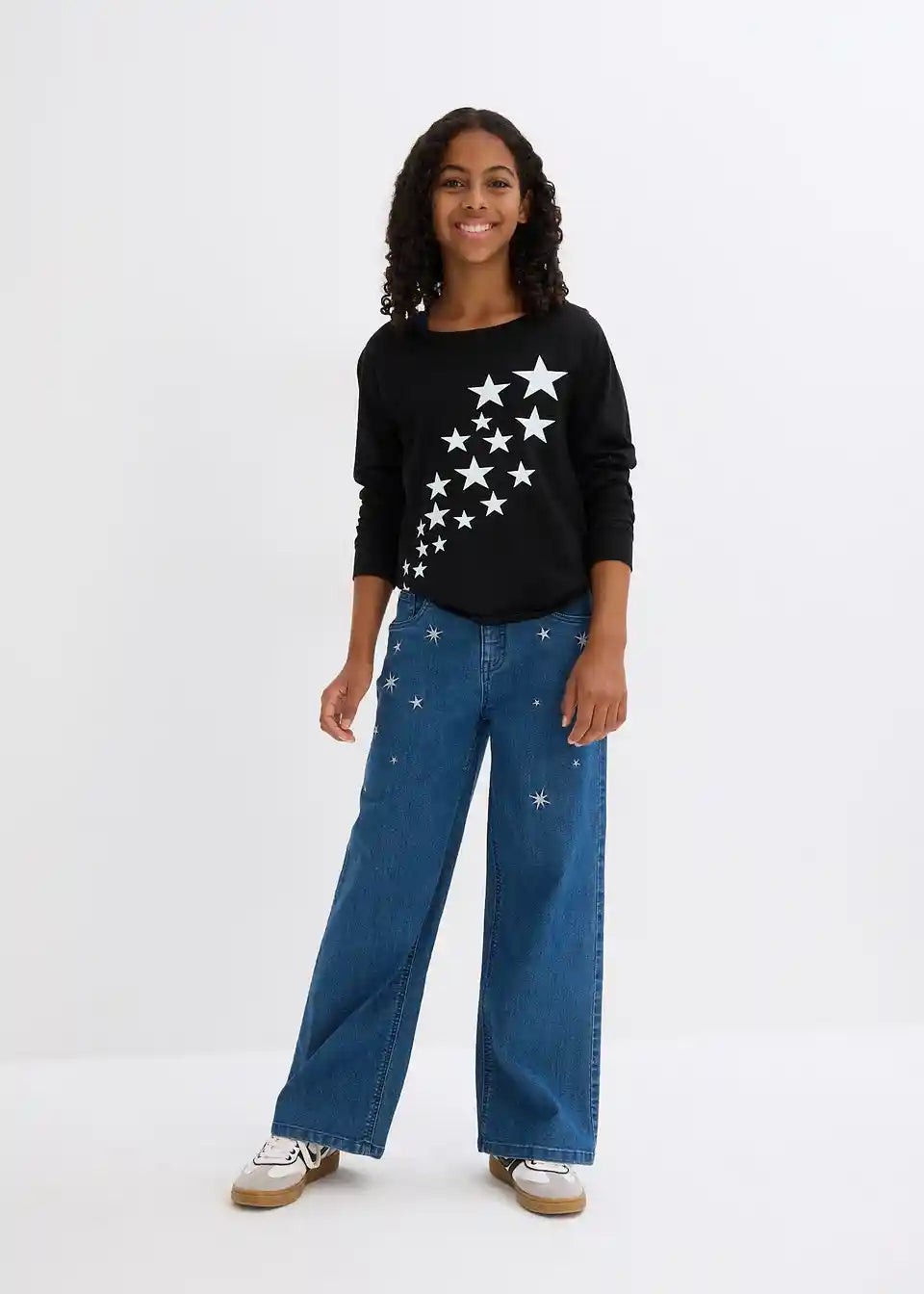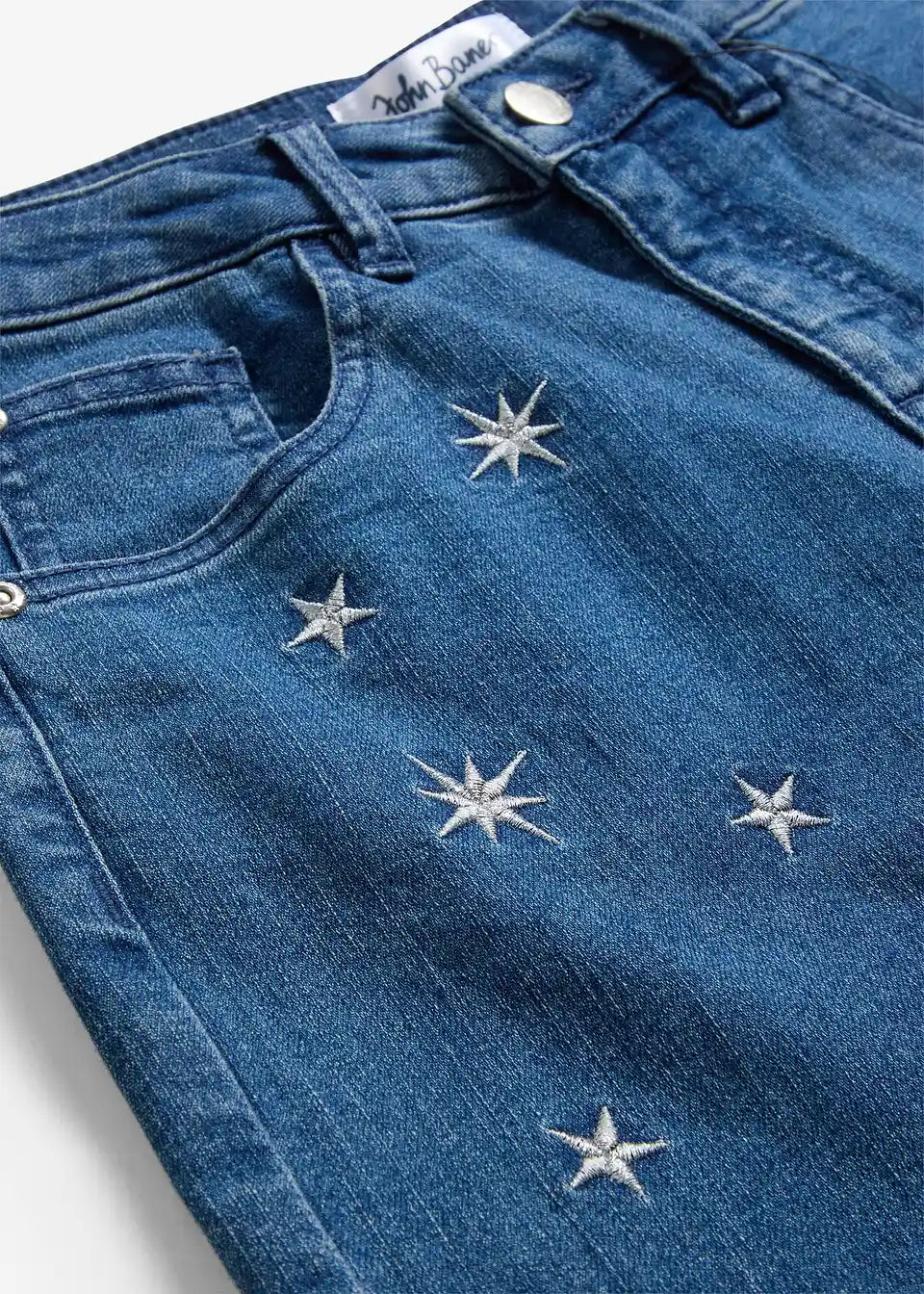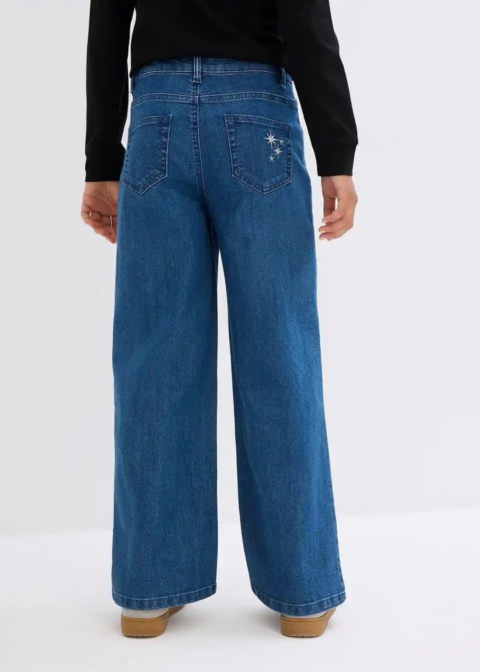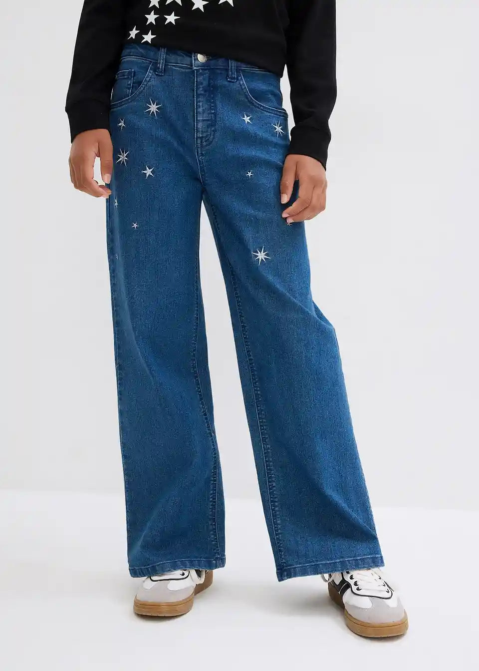 Dekliške kavbojke z vezenino in širokimi hlačnicami