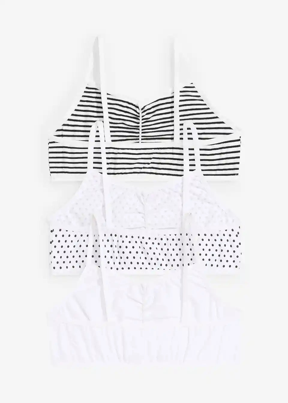 Čudovit dekliški bustier v paketu 3 kosov z organskim bombažem in majhno naborko spredaj