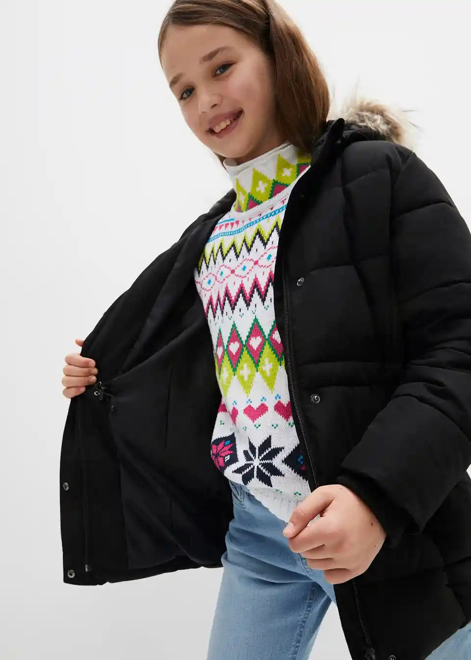 Material:zgornji material: 100% poliester (recikliran), podloga in vatiranje: 100% poliester, umetno krzno: 52% akril, 38% modakril, 10% poliester