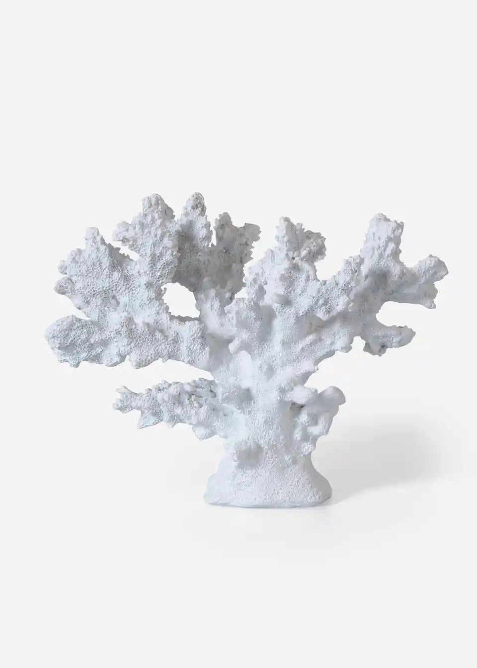 Ta eleganten dekorativni kos v obliki korale prinaša pridih morske elegance v vsak prostor. S svojo umetniško obliko in sijajno belo površino spominja na lepoto oceana ter osveži notranjost z moderno noto. Podrobno oblikovanje in strukturirana površina ustvarjata zanimive svetlobne in senčne učinke, ki naredijo ta kos pravo pašo za oči. Idealen kot dekoracija za mizo ali za na polico, poskrbi za sproščeno vzdušje in v dom prinese čar podvodnega sveta. Ta koralni element ni le dekorativen, temveč tudi izraz stila in individualnosti.