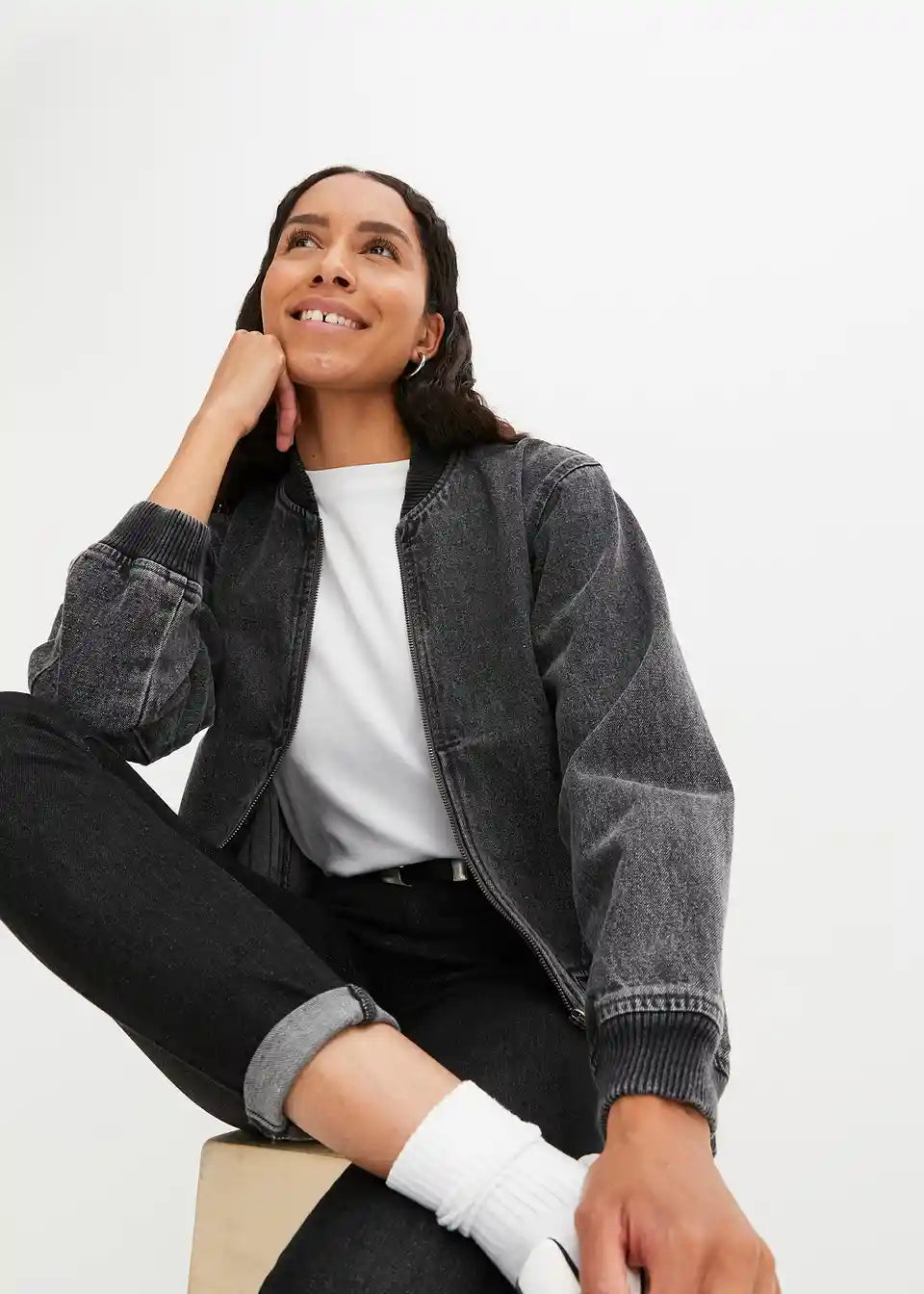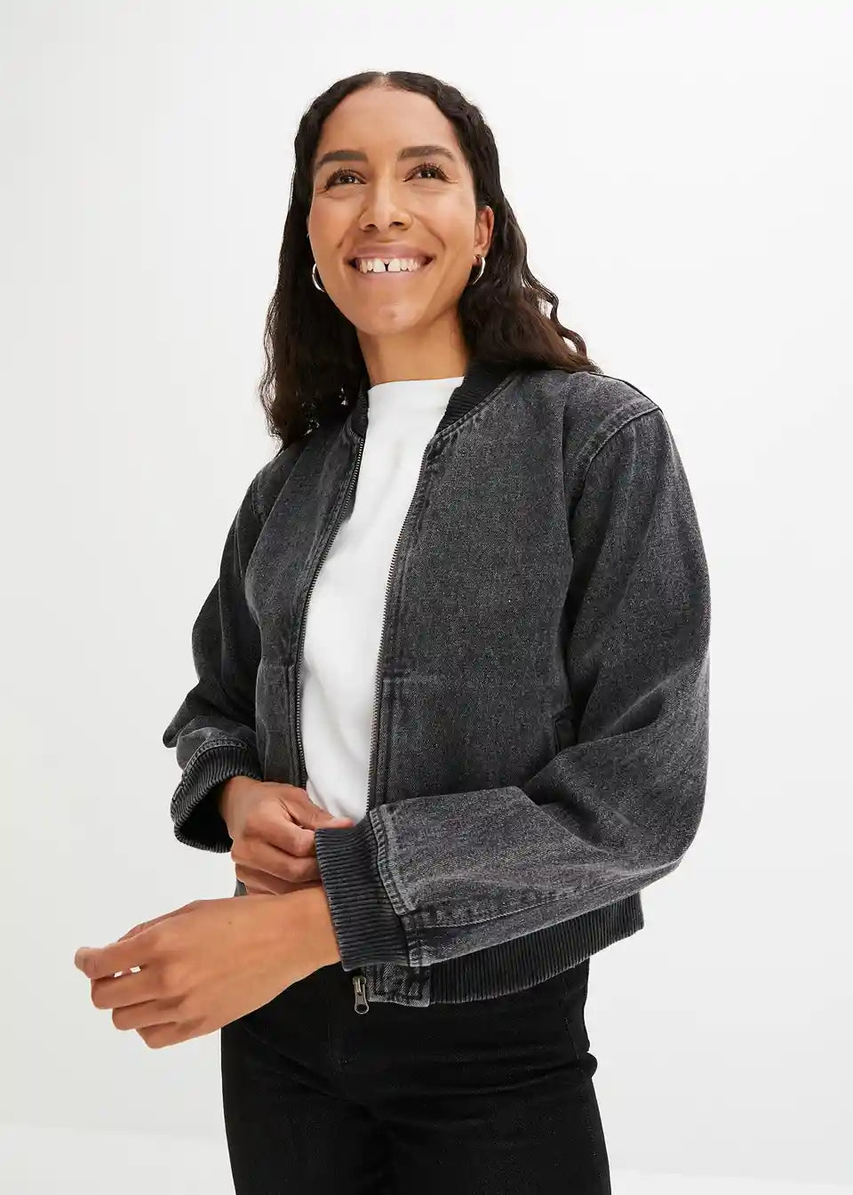 izstopajoč Denim-Blouson z zadrgo