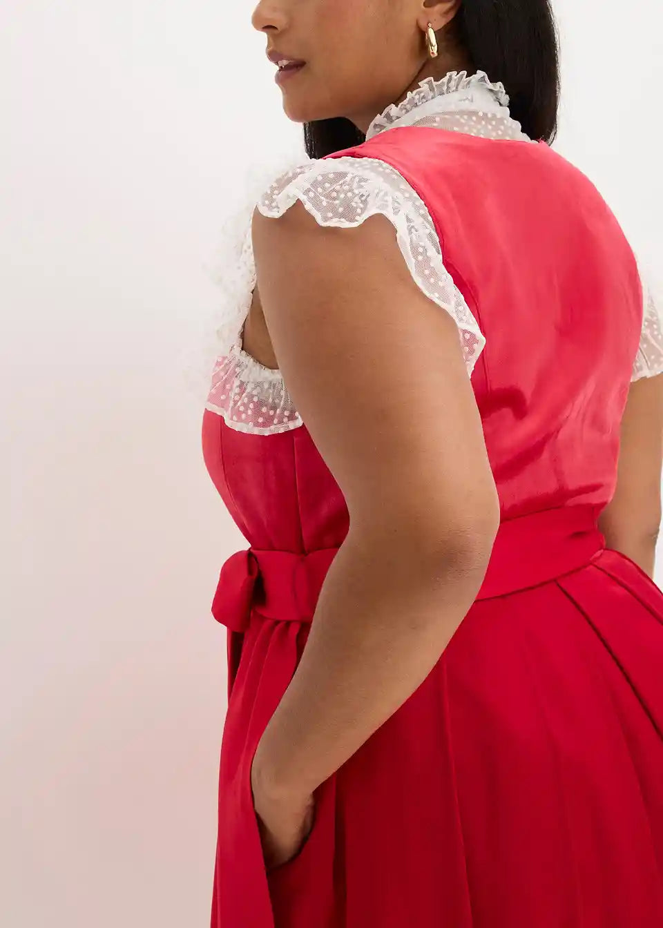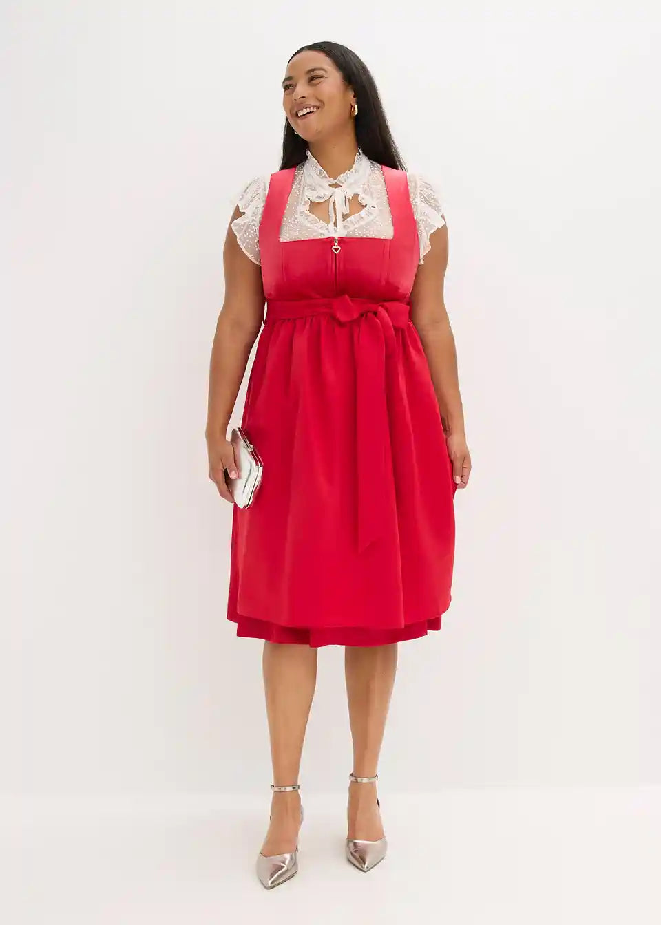 Tradicionalni dirndl z visokokakovostnim žametnim steznikom in spreminjajočo se predpasnikom. Krilo je opremljeno s prijetno bombažno podlogo.