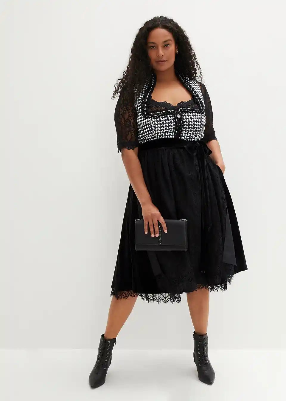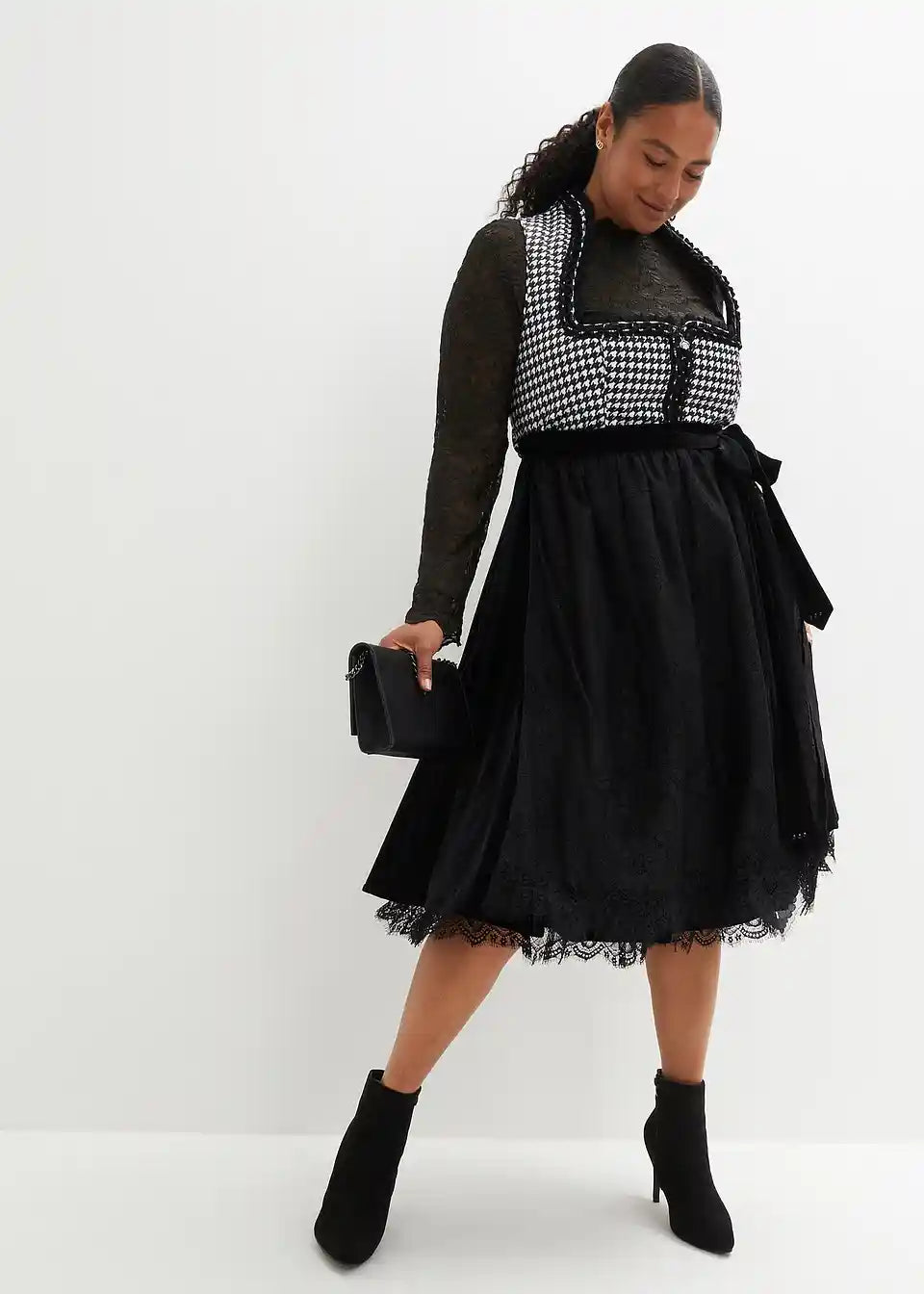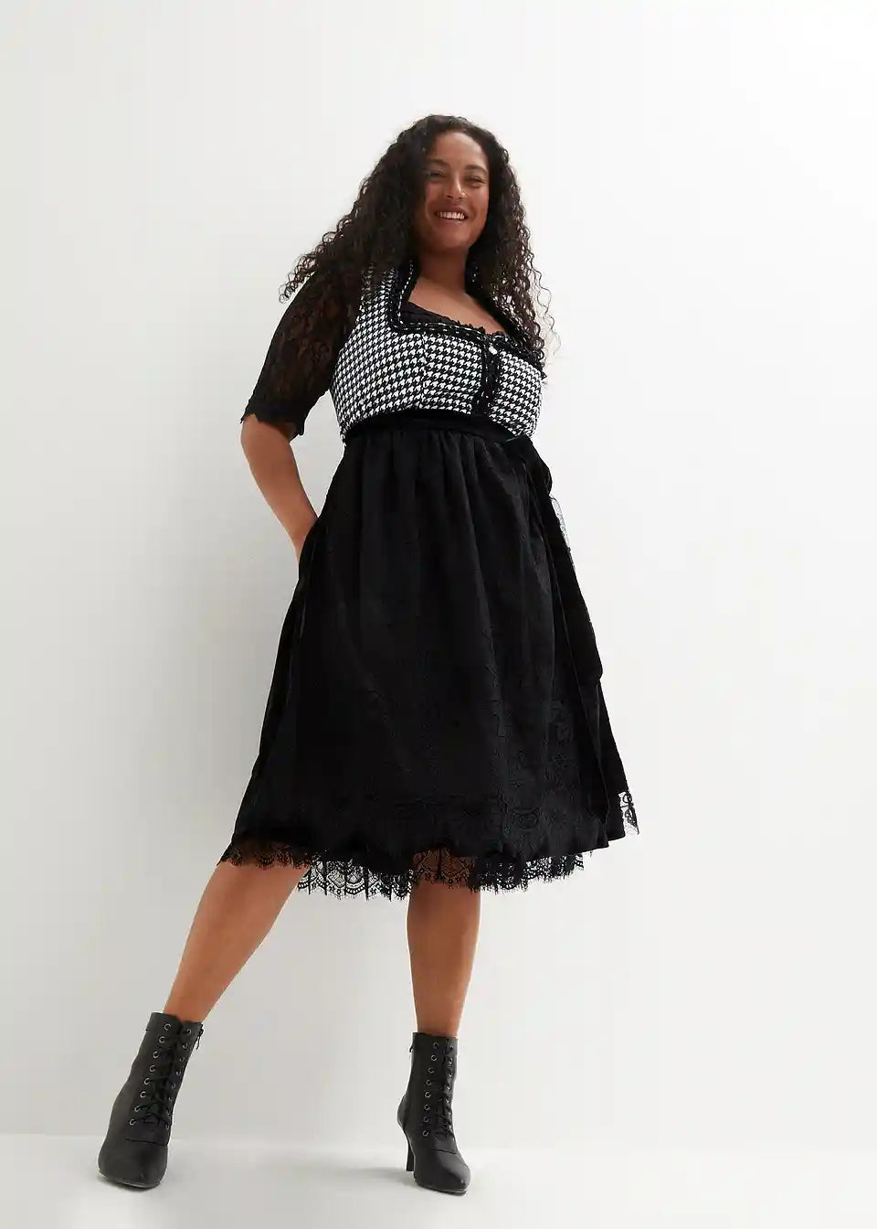 Visokokakovosten Dirndl z mnogimi detajli in sprednjo zadrgo