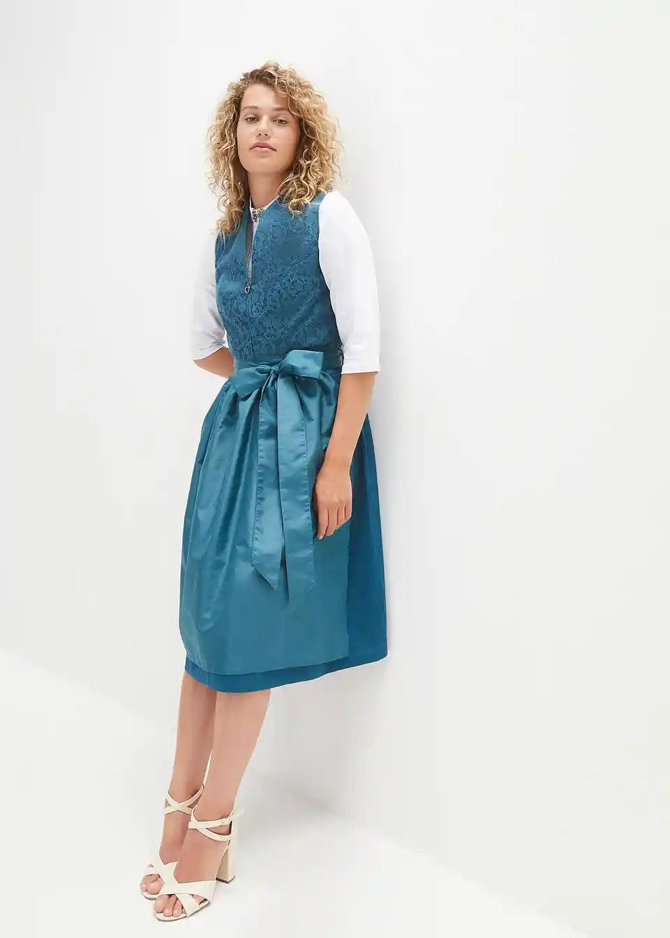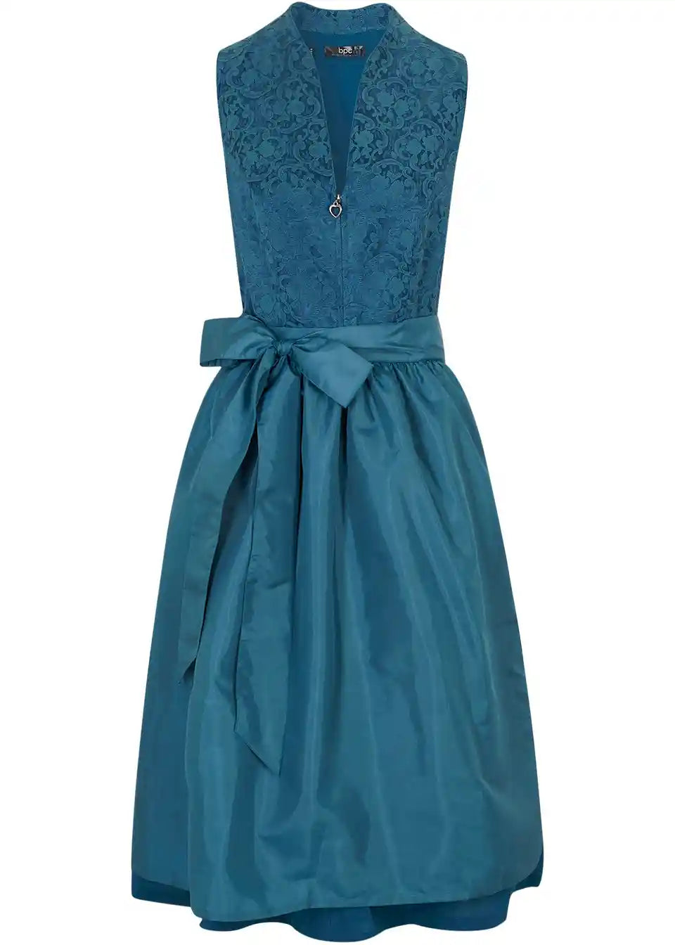 Eleganten dirndl z visokokakovostnim jacquard steznikom in stoječim ovratnikom, krilo je podloženo z udobnim bombažnim materialom.