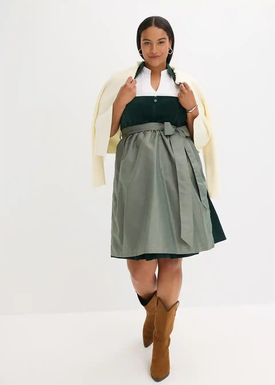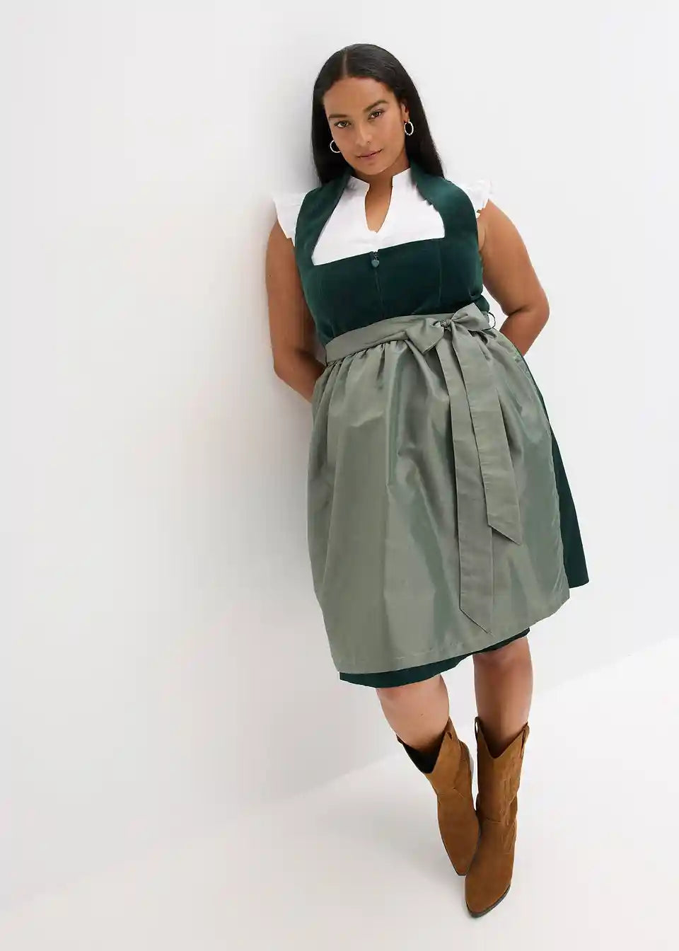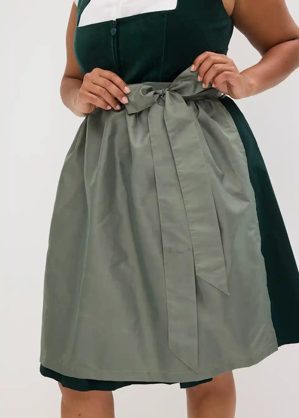 Dirndl z žametnim steznikom in predpasnikom iz satena