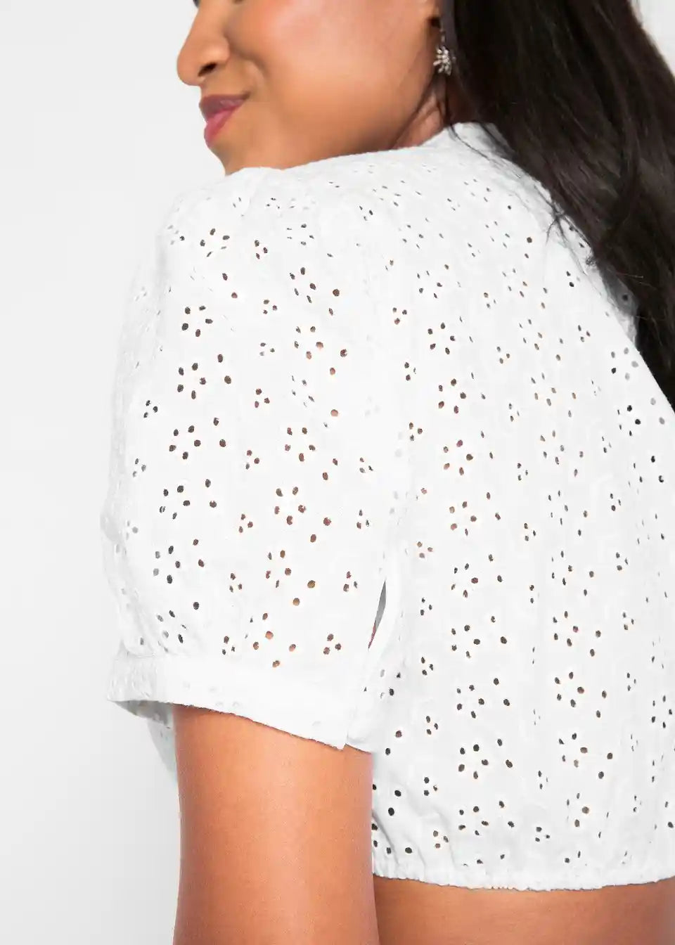 Čudovita dirndlbluza z atraktivno čipkasto vezenino in napihnjenimi rokavi