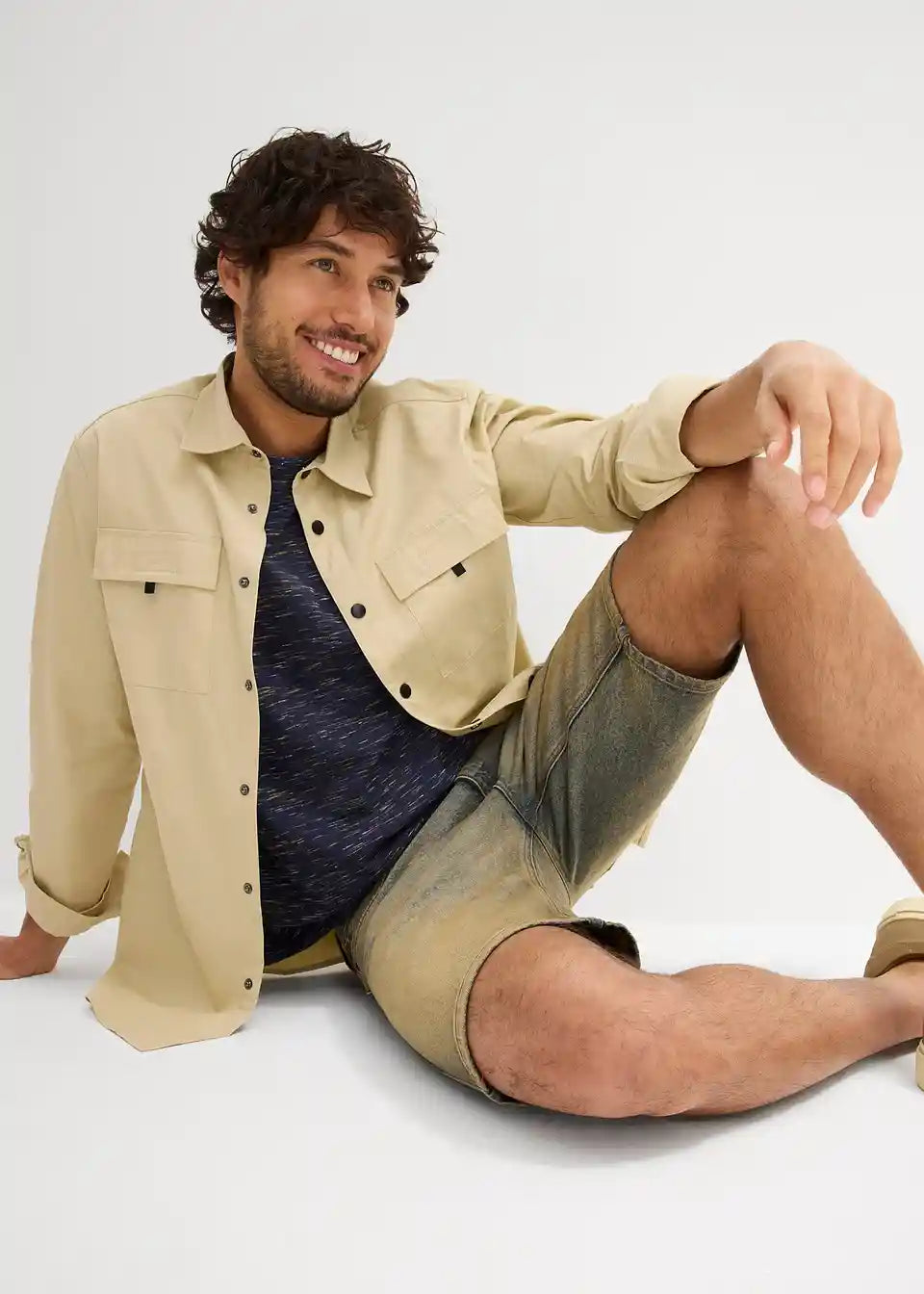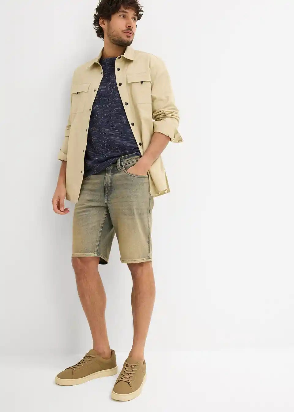 Umazano sprane bermuda kavbojke v klasičnem kroju