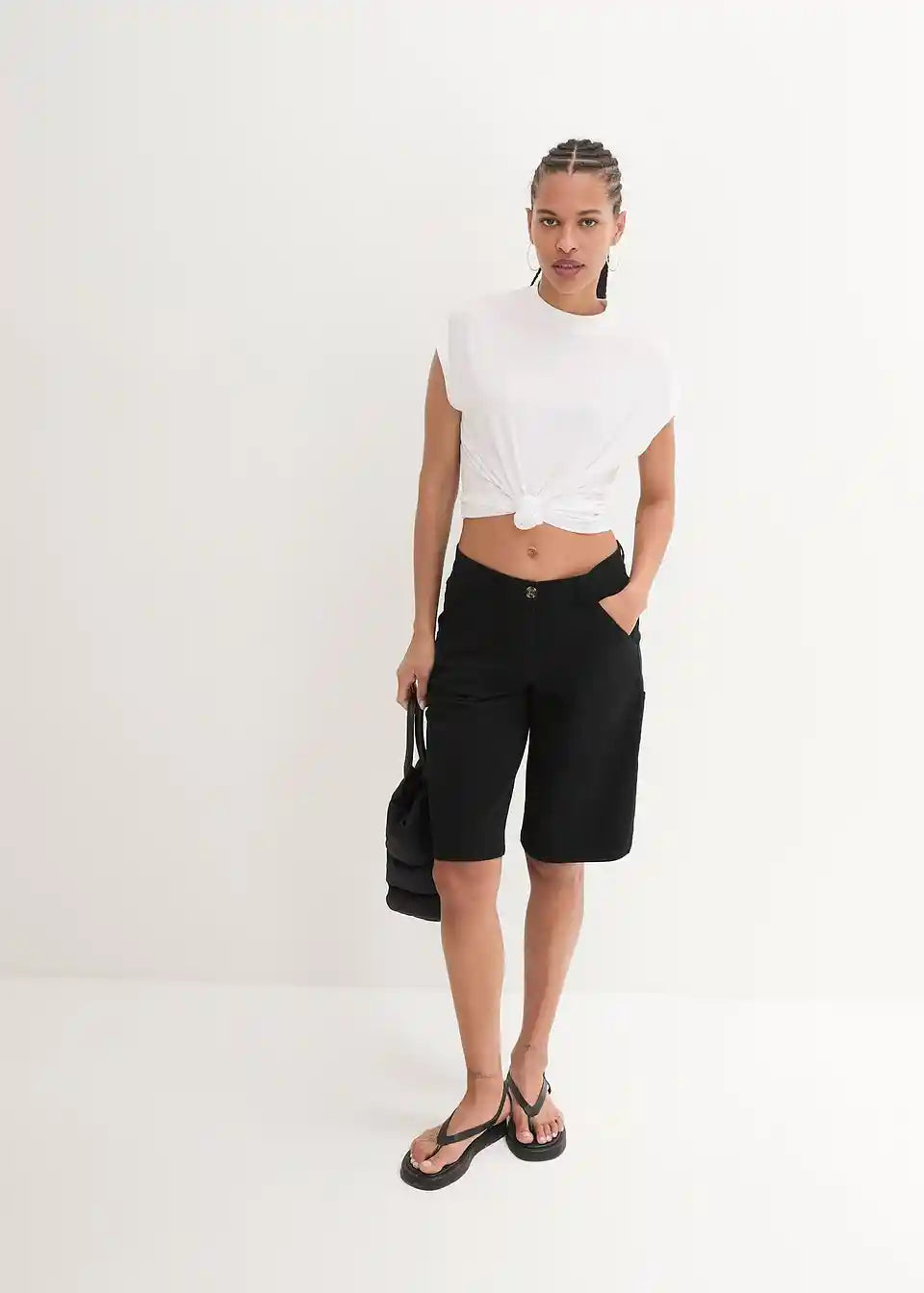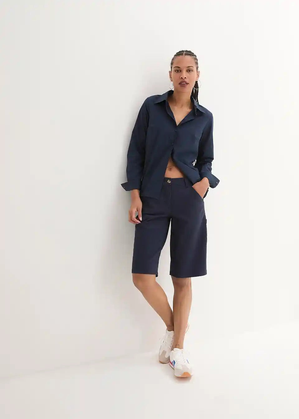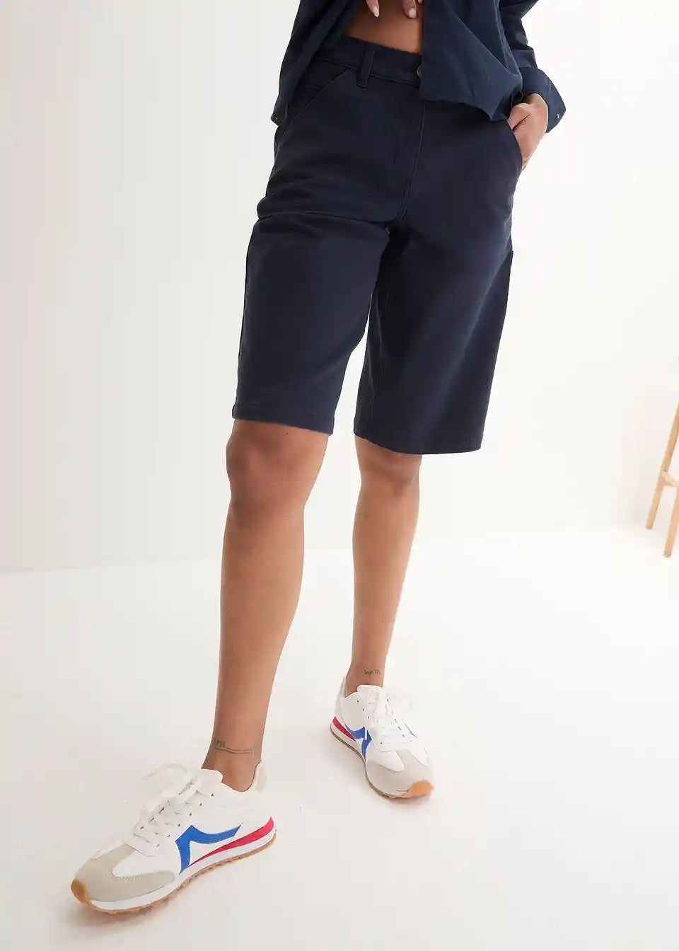 Bombažne bermuda hlače s praktičnimi detajli v dolžini do kolen