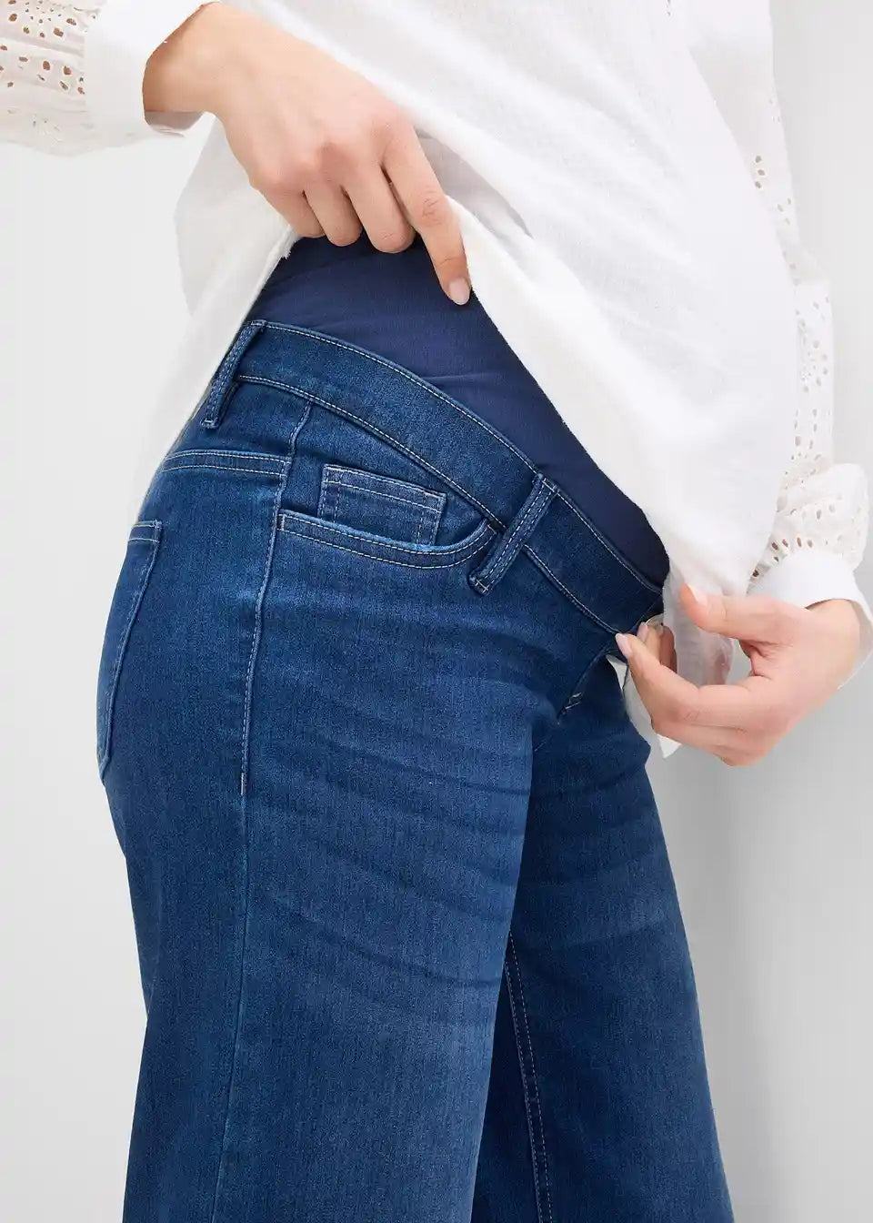 Izjemno mehke kavbojke za nosečnost z širokimi hlačnicami