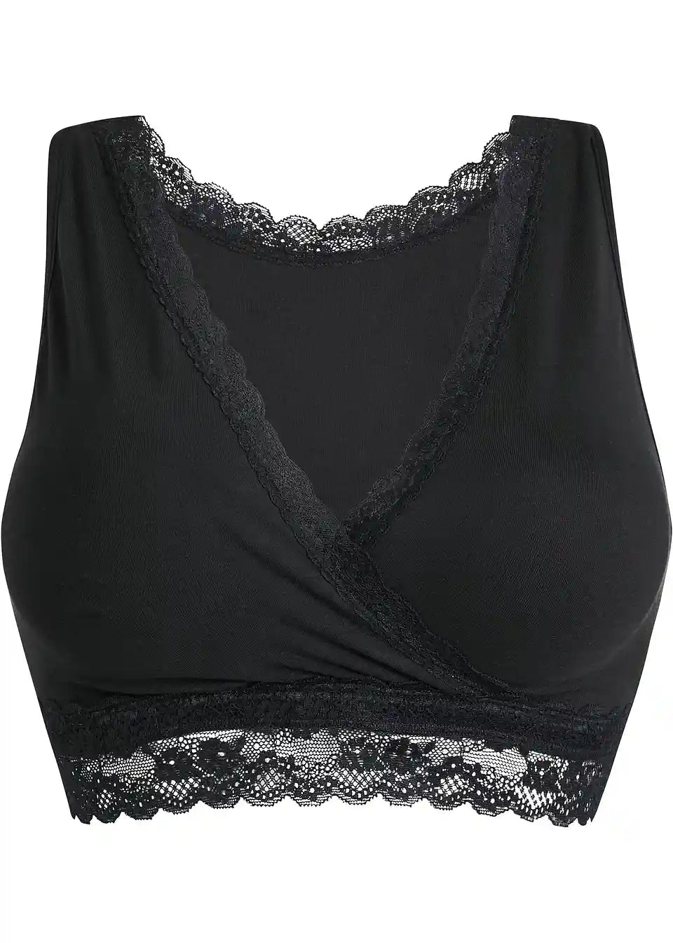 Udoben dojenjski bustier je izdelan iz mehkega bio bombaža in okrašen s prikupnim čipkastim robom. Zaradi praktičnega kroja je nedrček idealen za dojenje. Med nosečnostjo se telo spreminja. Zato vam priporočamo, da se ponovno izmerite, da določite svojo pravilno velikost.