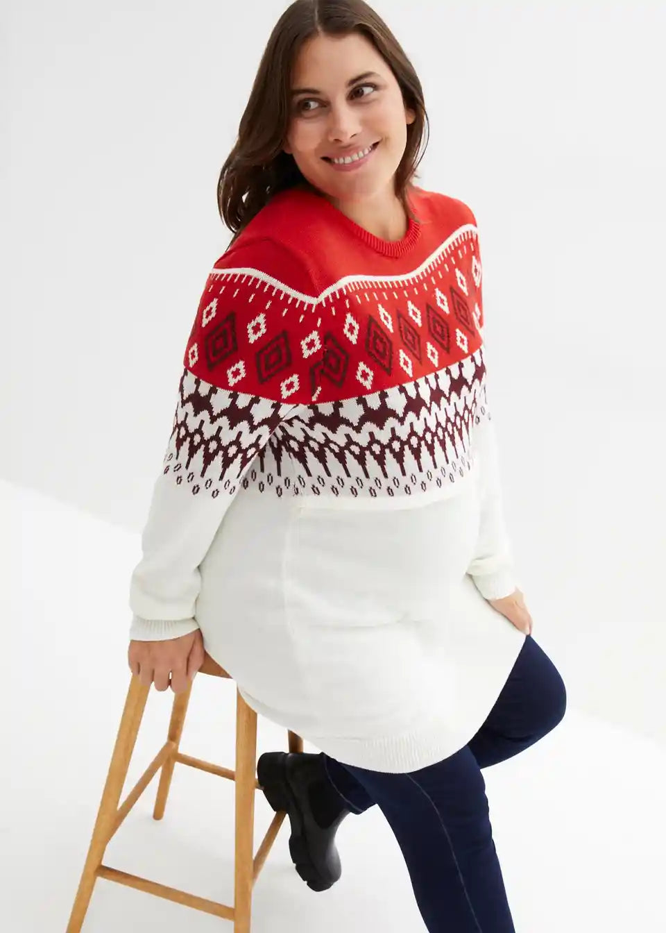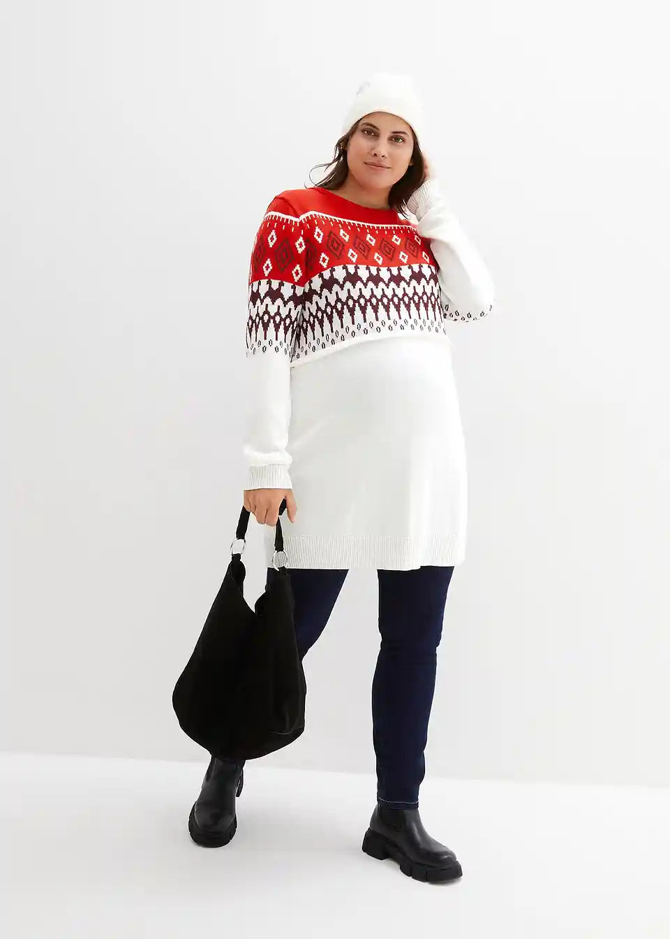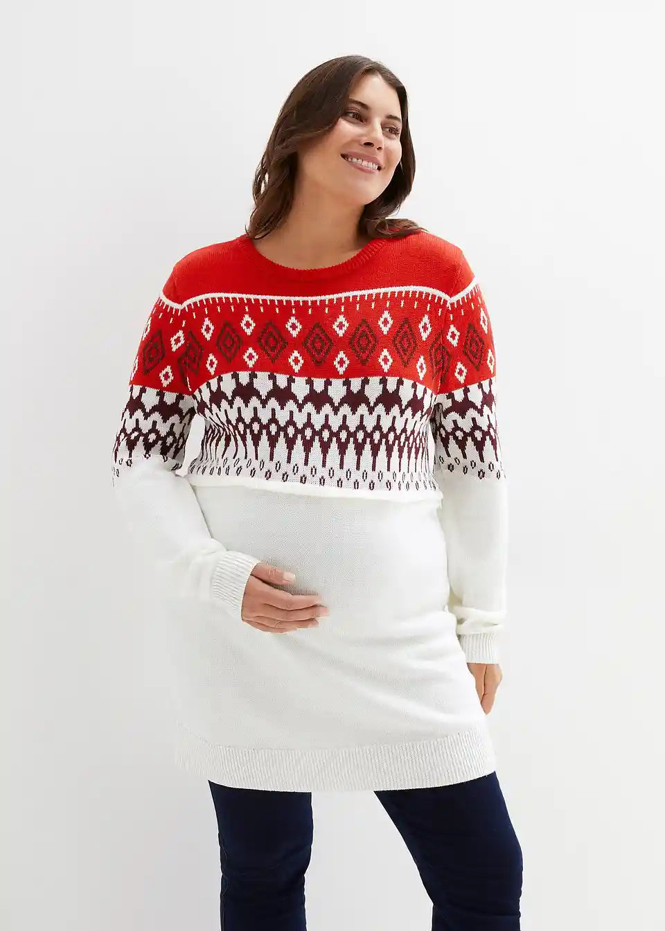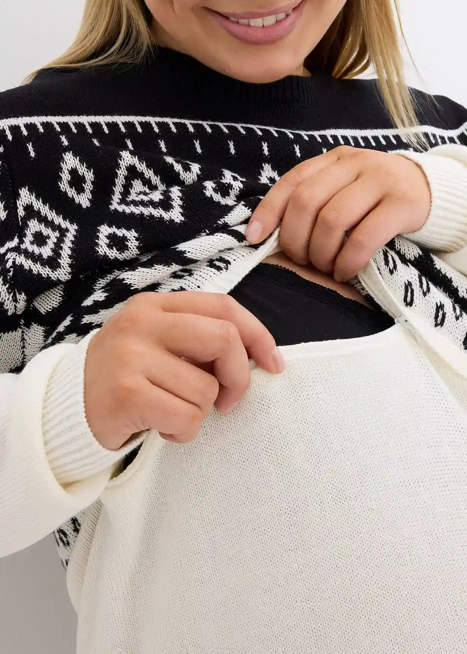 Mehko prijeten pulover za čas nosečnosti in dojenja. Z zasnovo z dvojnimi plastmi pomaga preprečiti izgubo toplote ter omogoča prijetno dojenje za mamo in otroka.