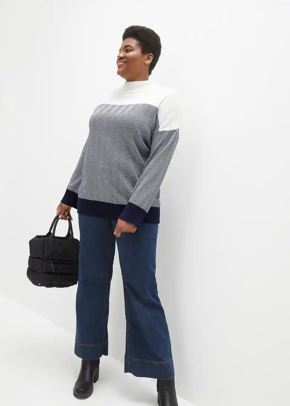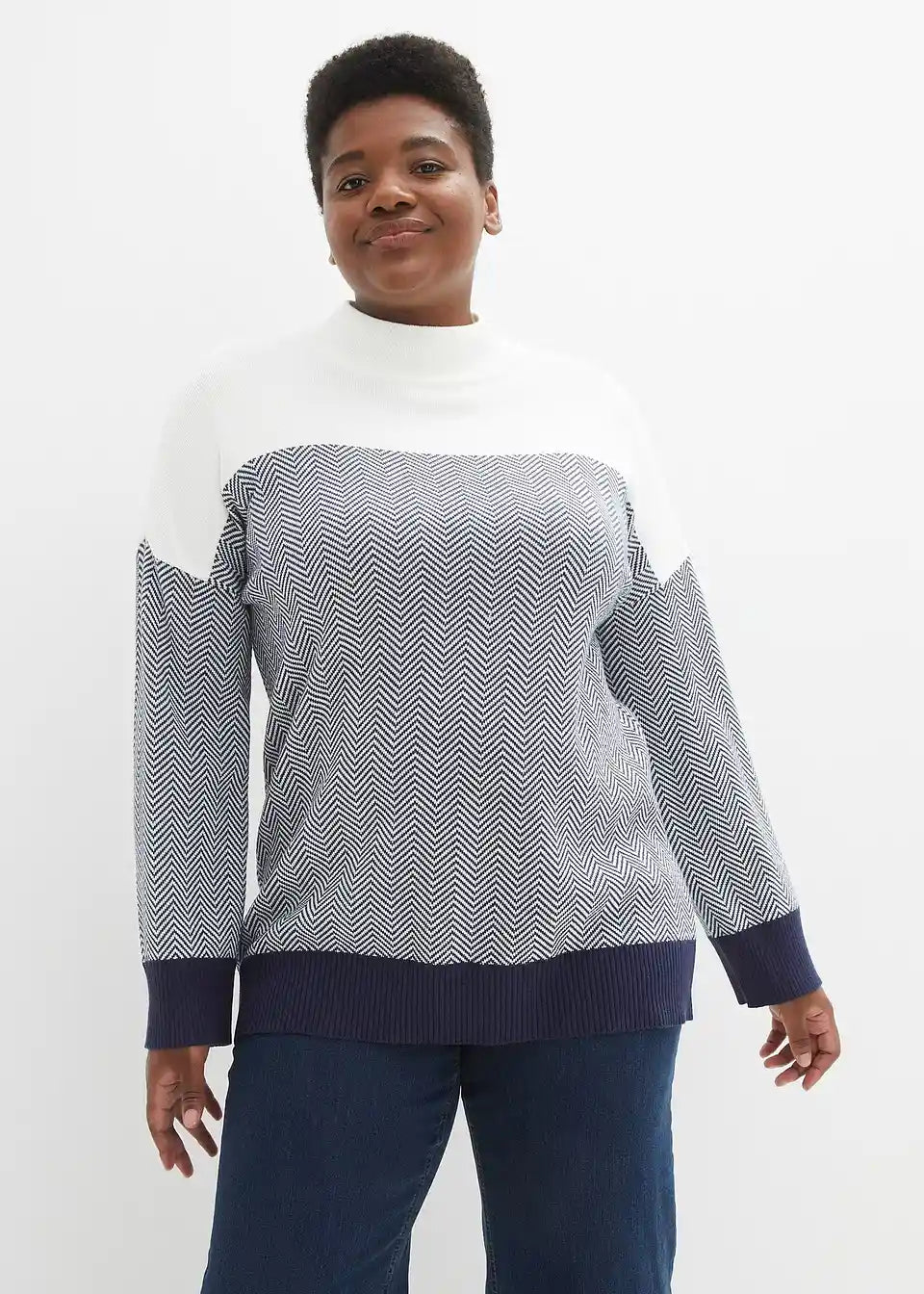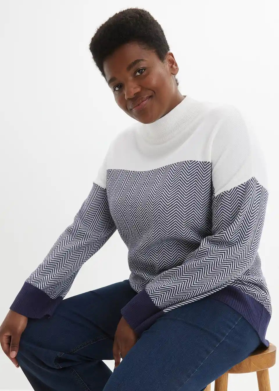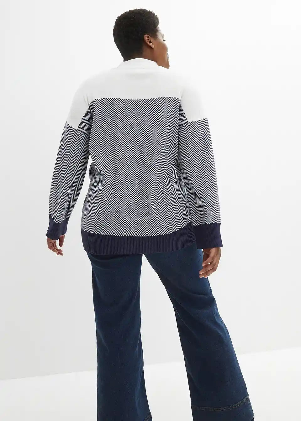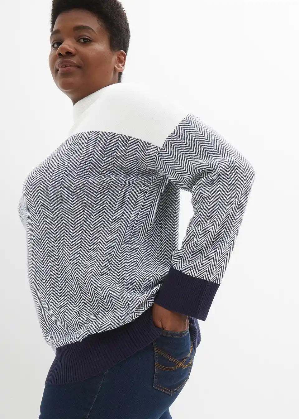 Barvno kontrastni pleteni pulover