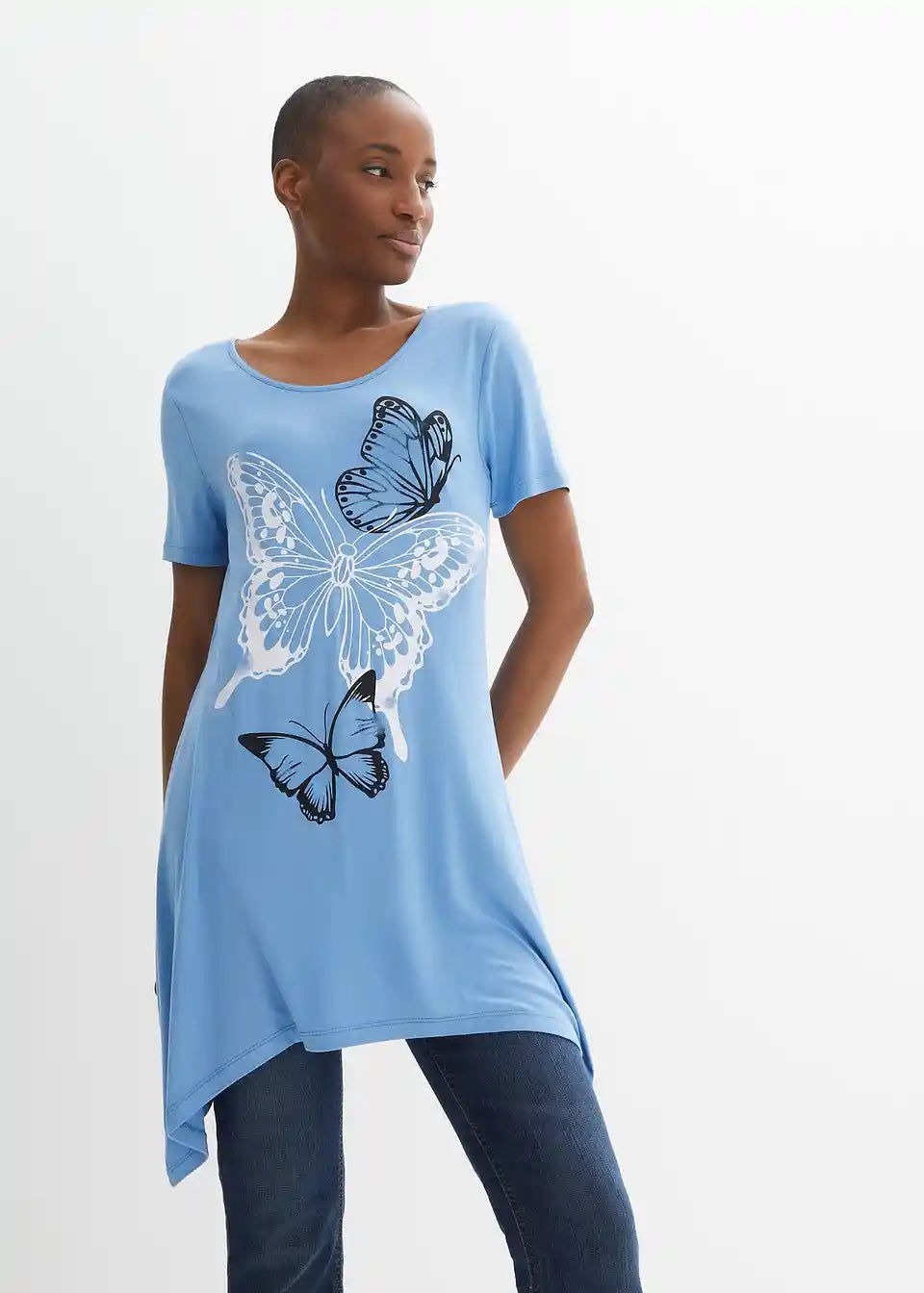 Dolga majica s konicami in vzorcem metulja