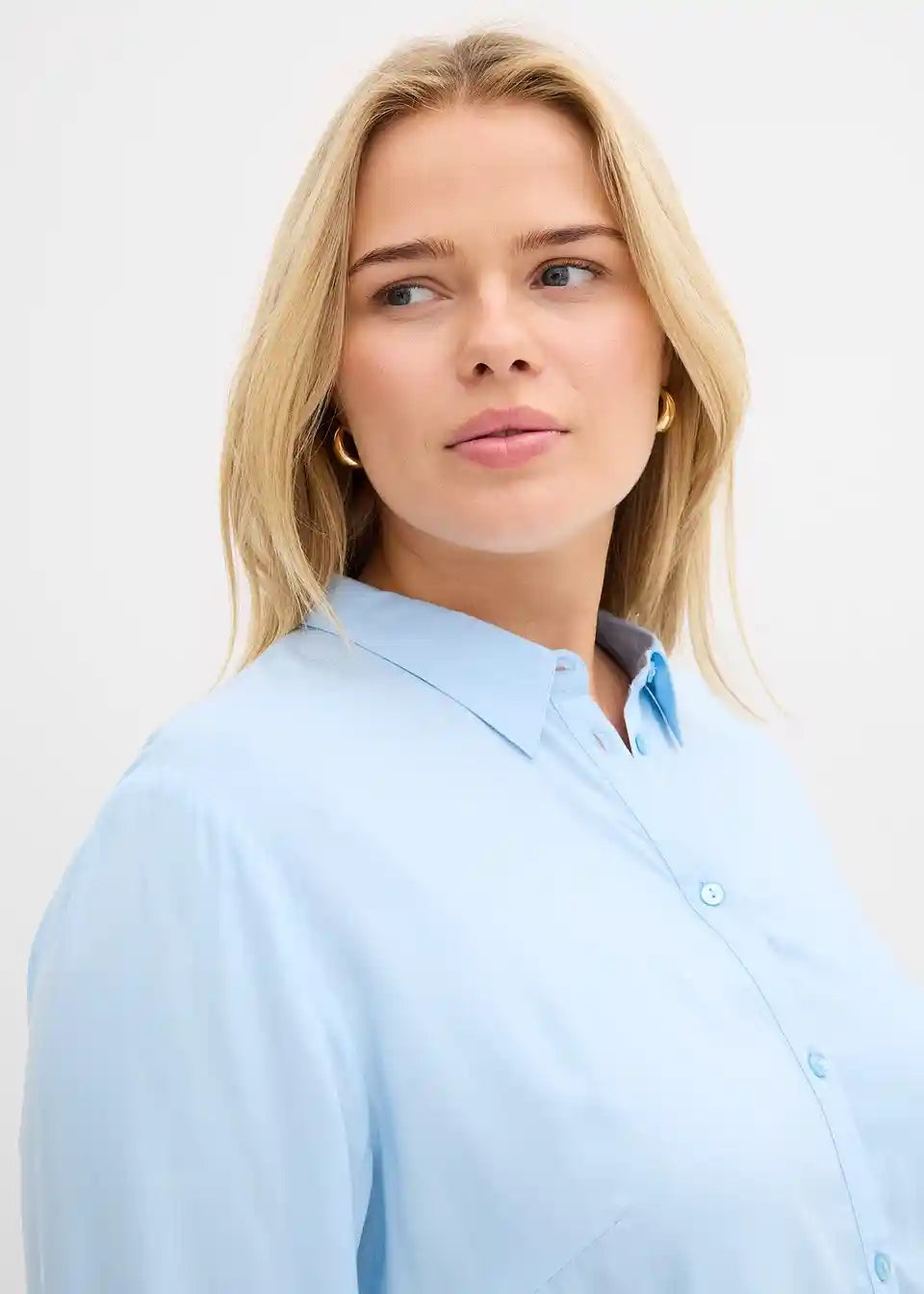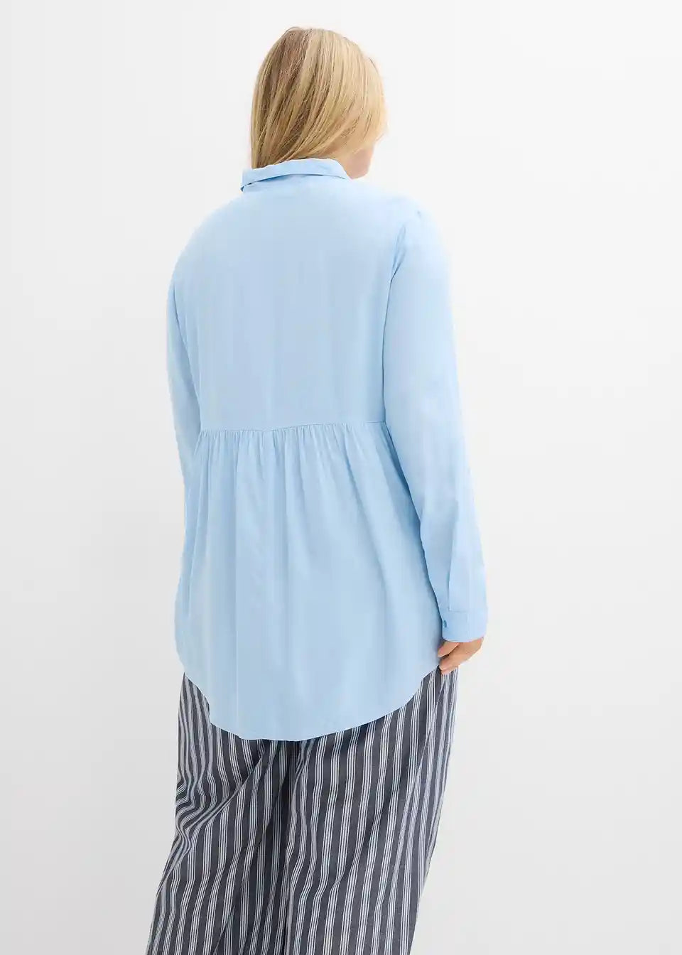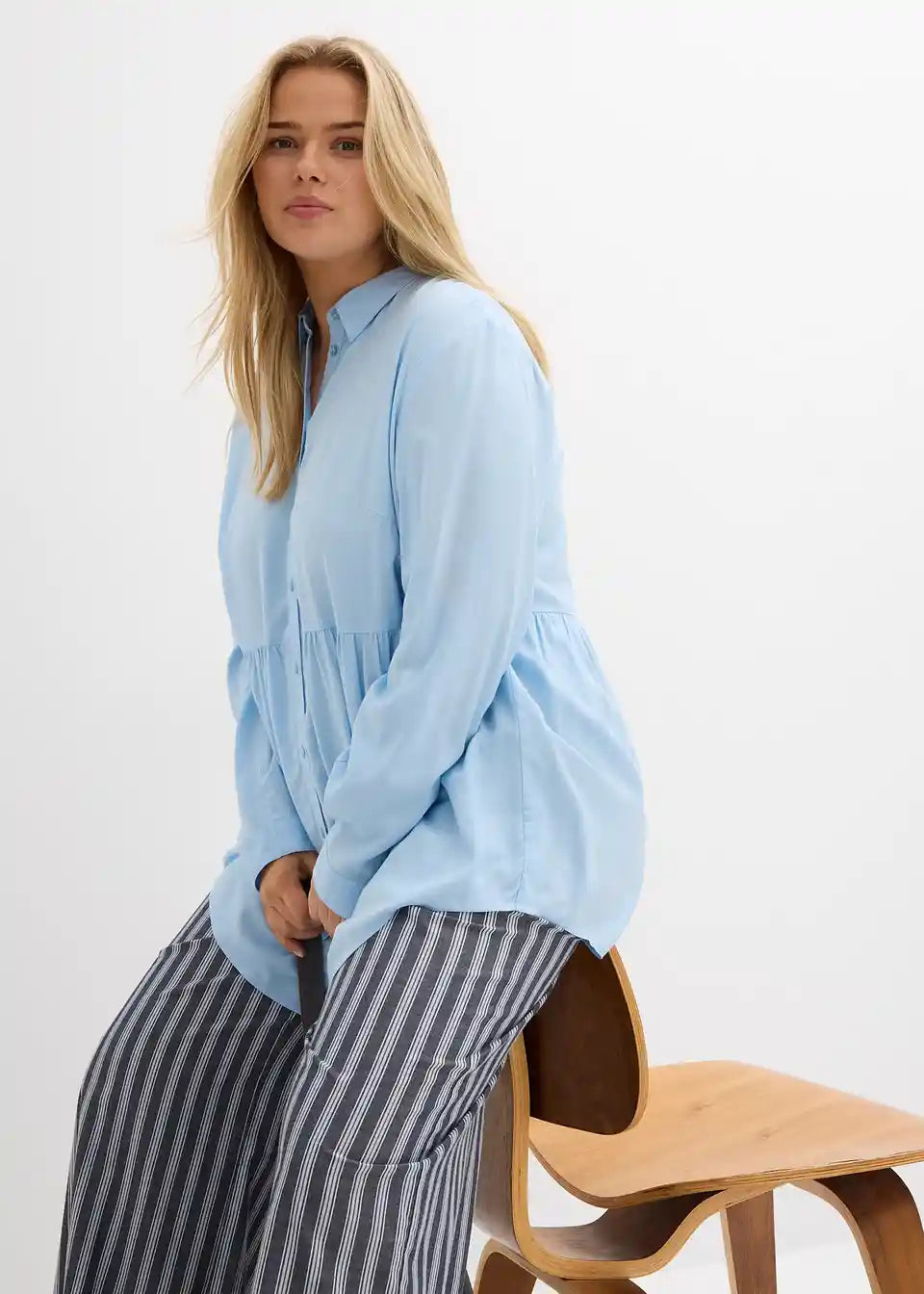 Ženstvena viskozna tunika z volančkom in kent ovratnikom