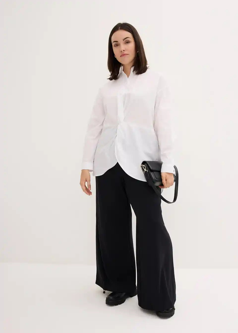 Dolga bluza z modnimi detajli iz poplina in dolgimi rokavi