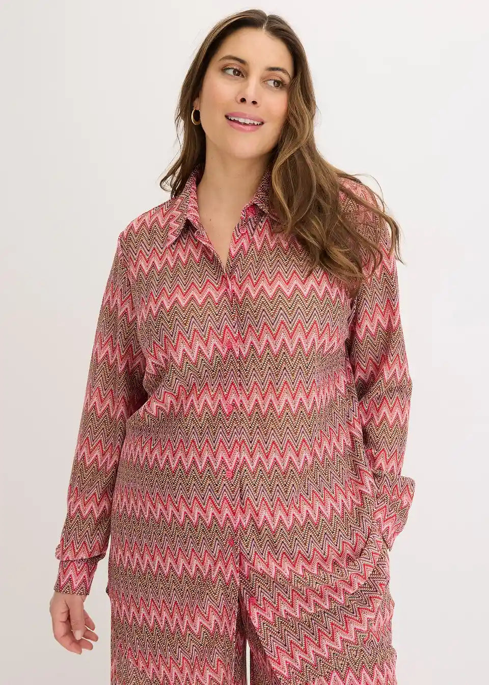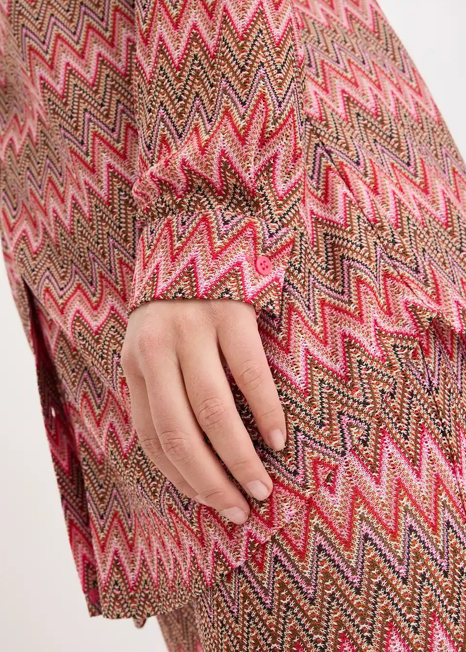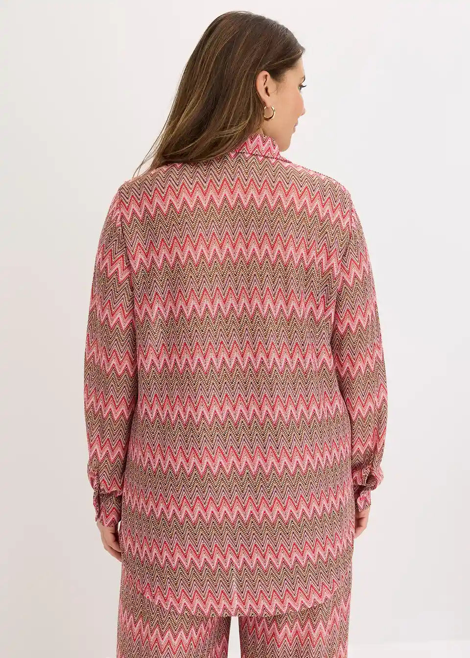 modna ohlapno krojena dolga bluza iz jerseya z videzom kvačkanja