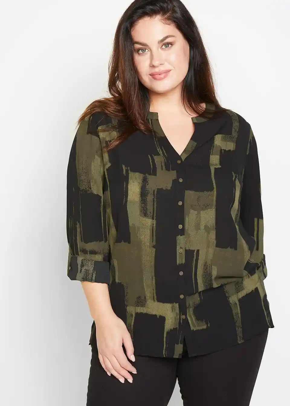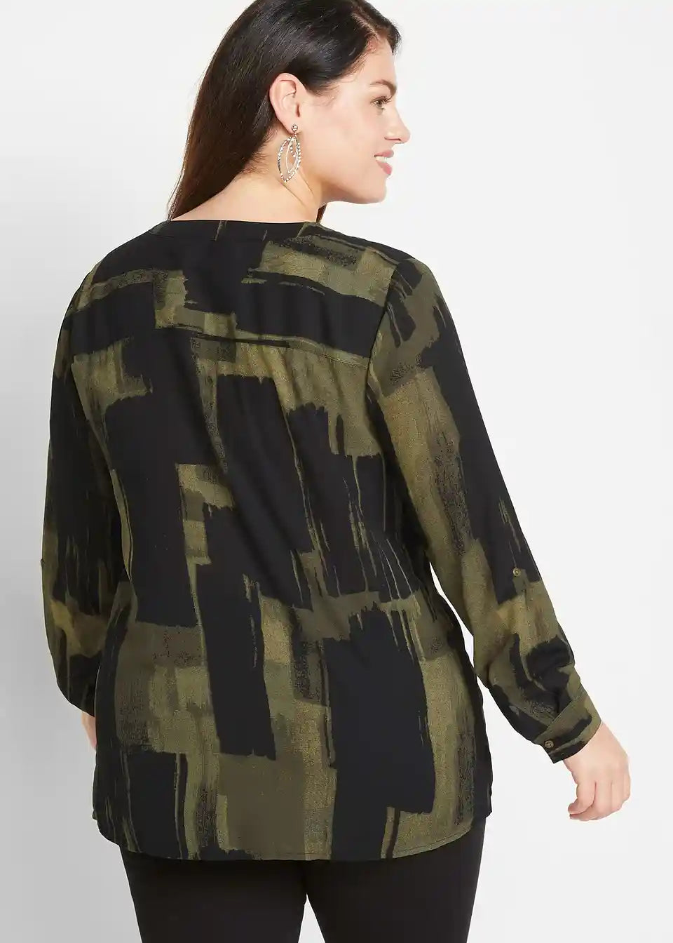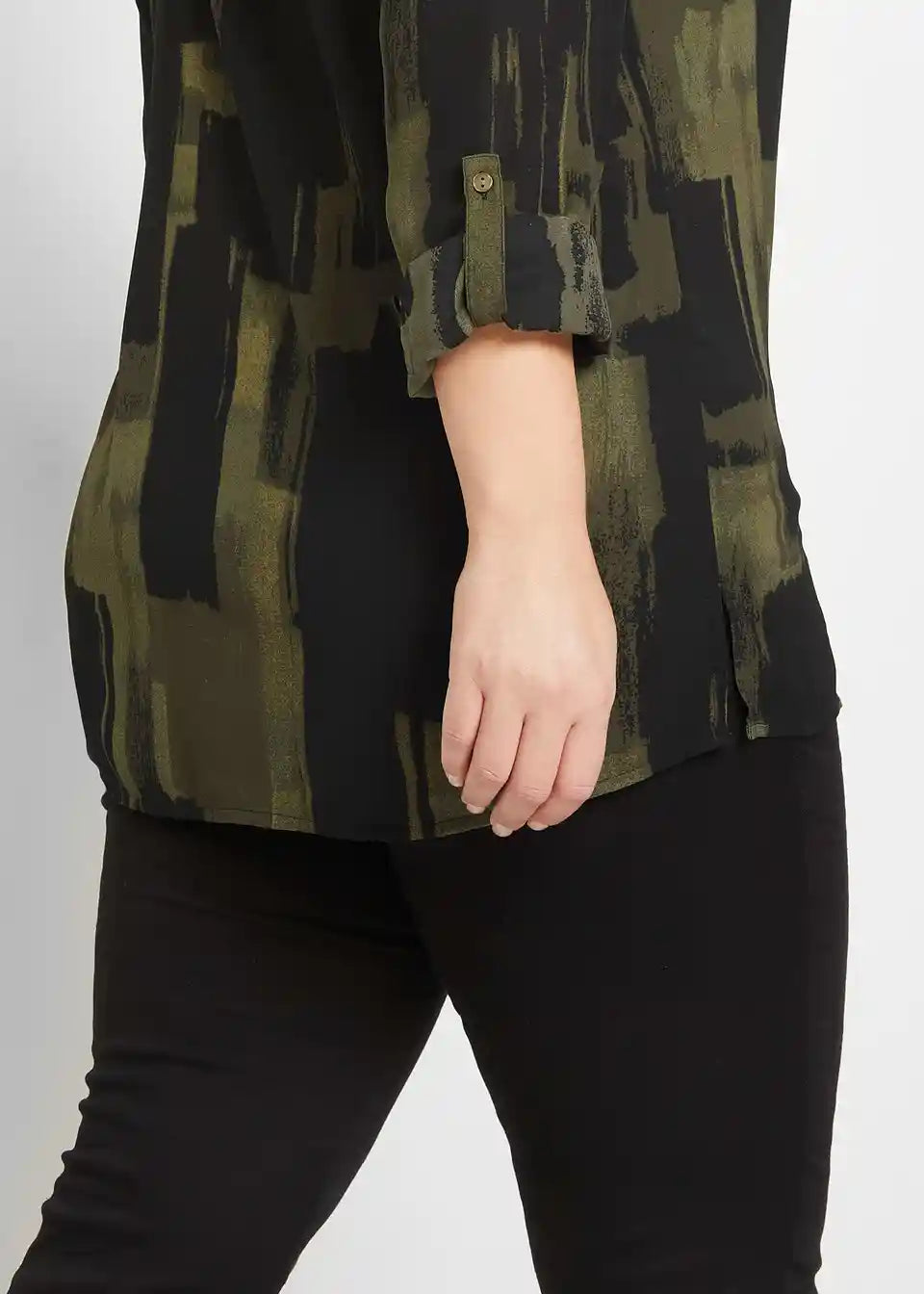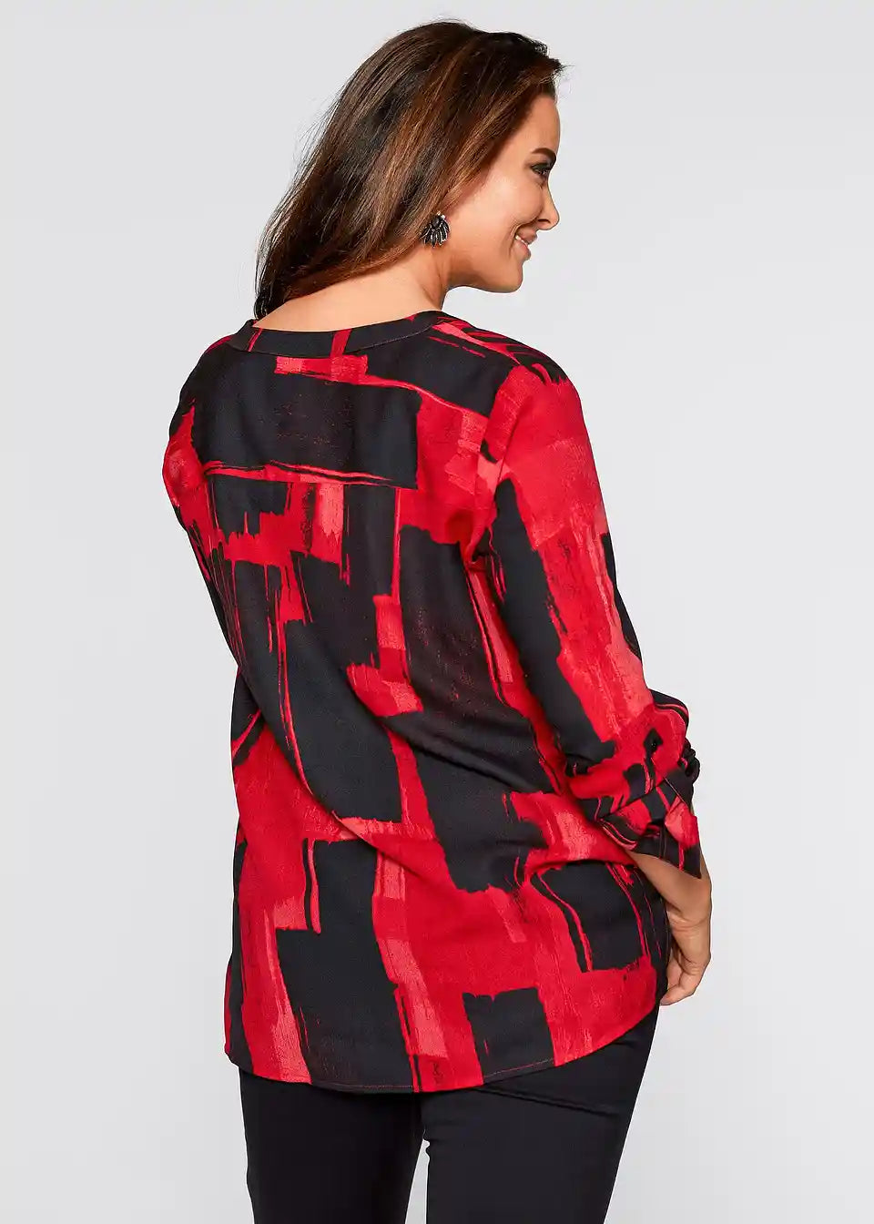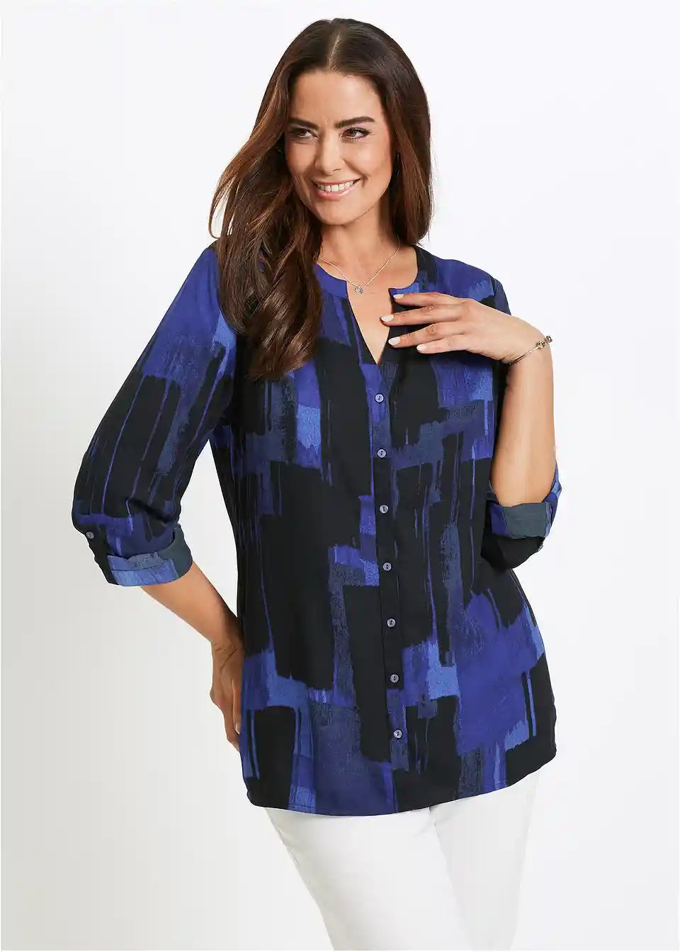 Elegantna bluzna s tiskanim vzorcem in stranskimi razporki
