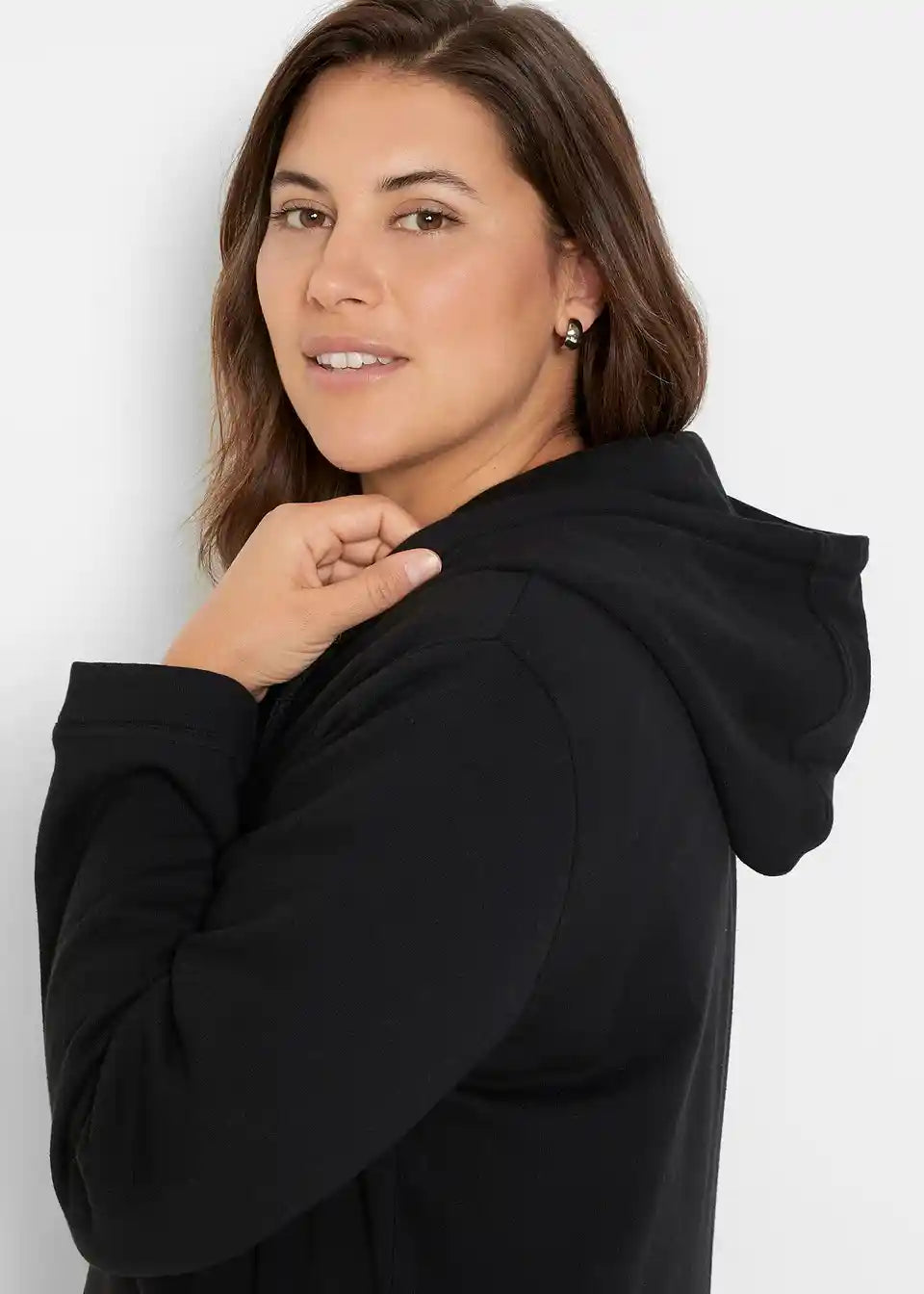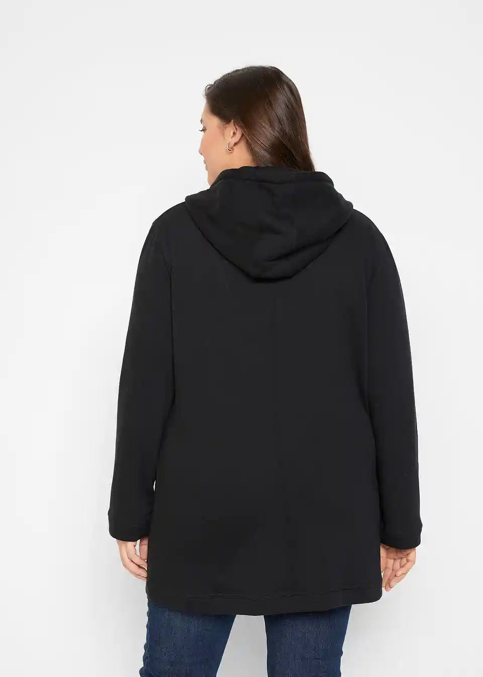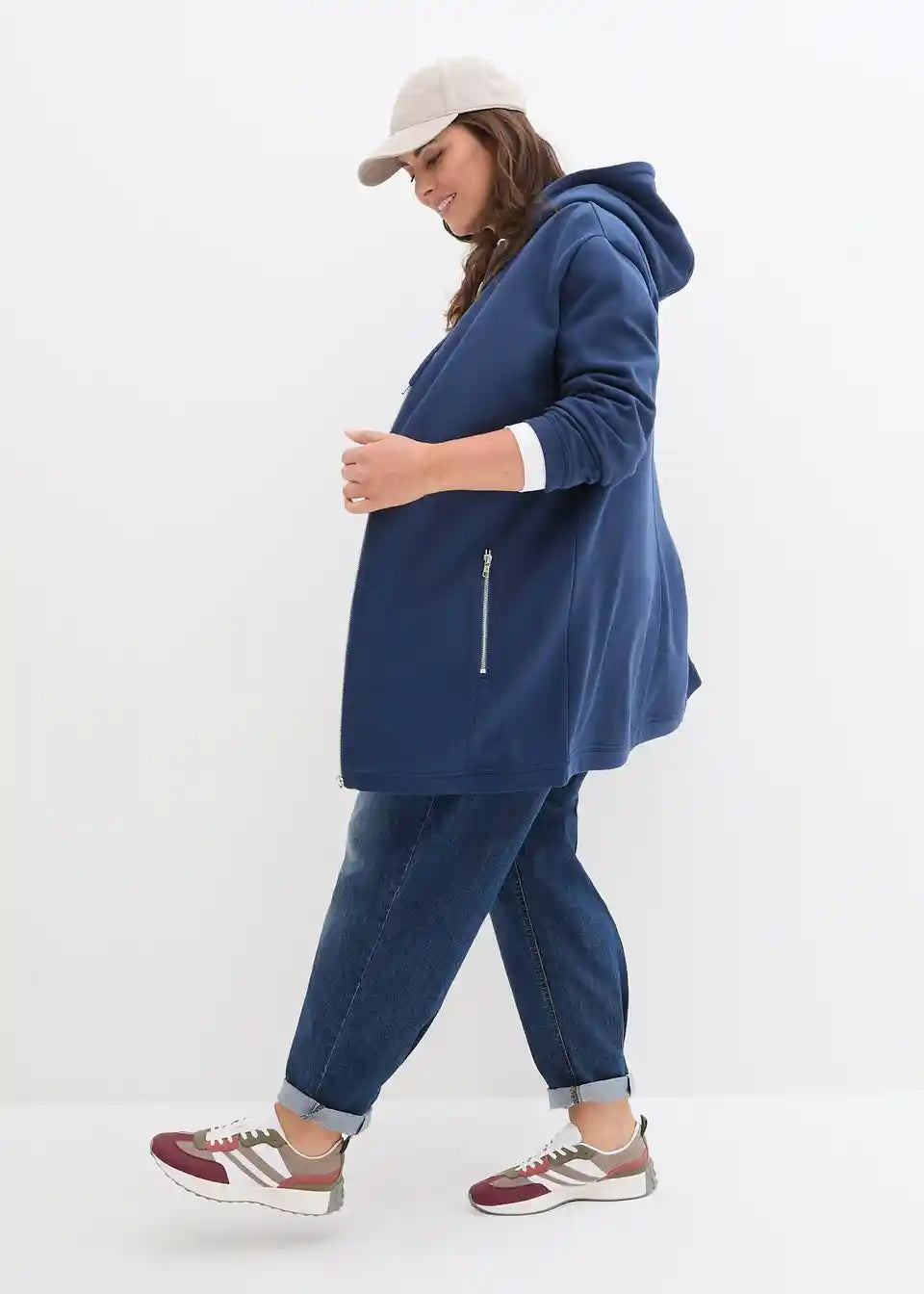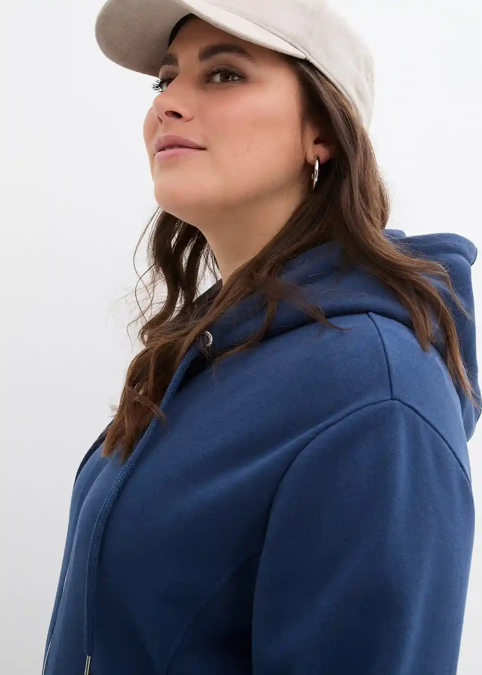 Udobna dolga jopica iz trenirke s kapuco in poševnimi žepi