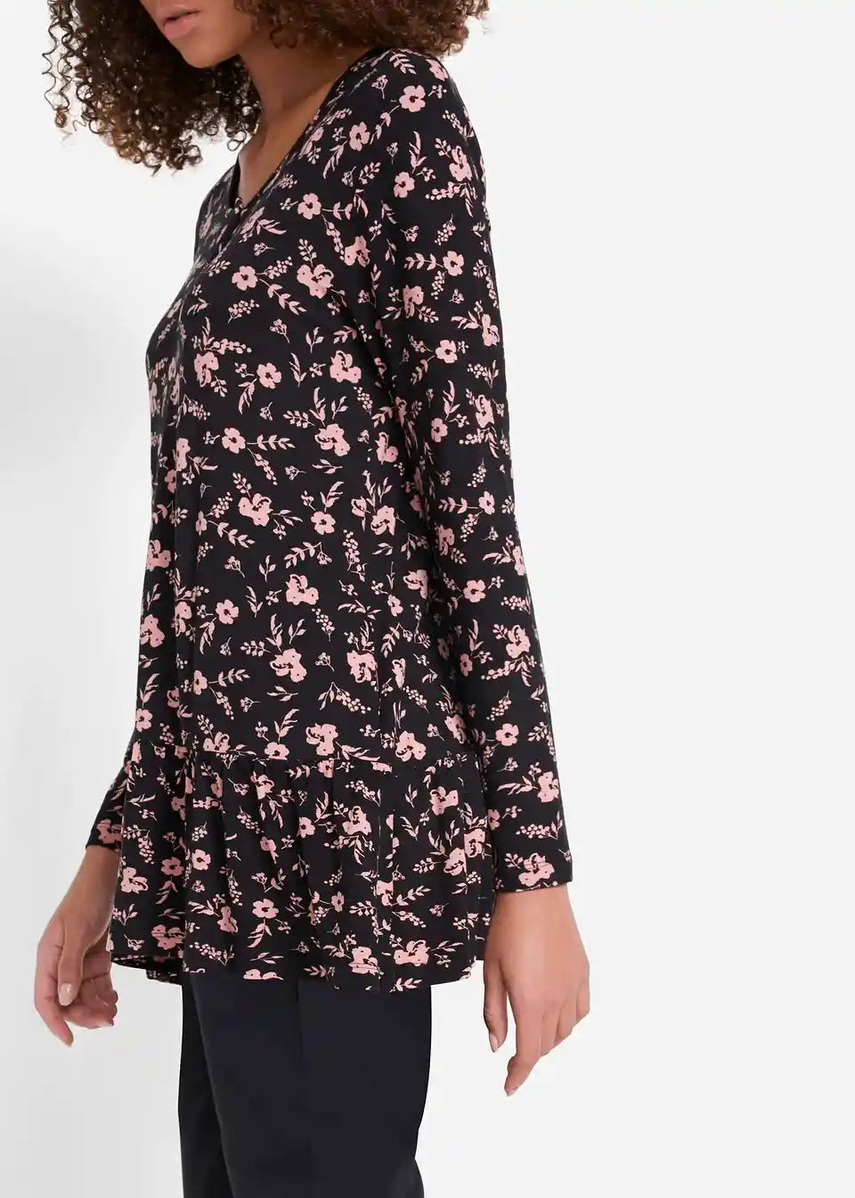 Modna majica tunika z volanom na robu in stranskimi vstavnimi žepi, 7/8 dolžina rokavov
