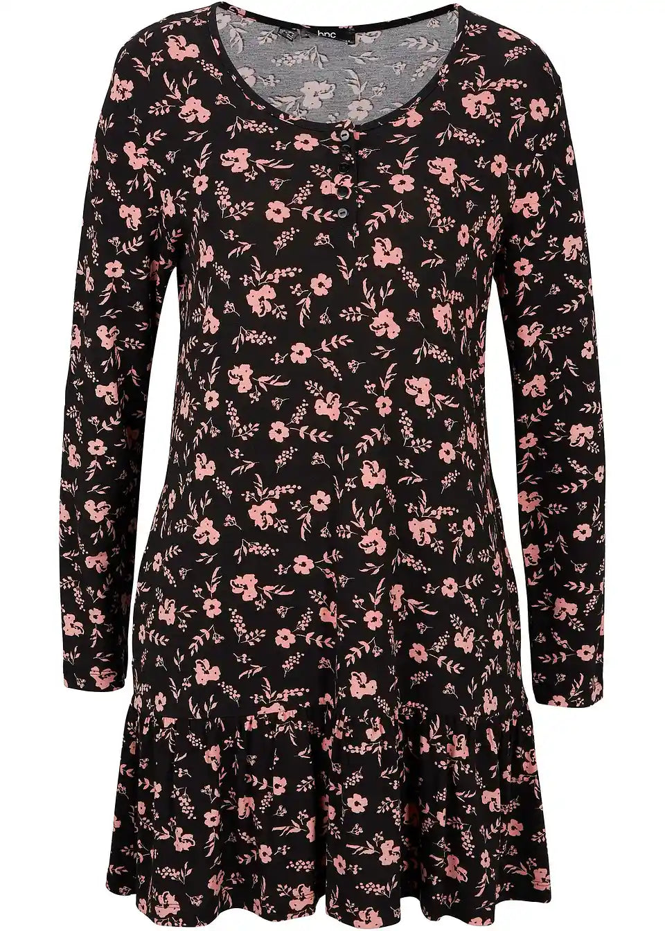 Dolga tunika iz trikoja z žepi in dolgimi rokavi