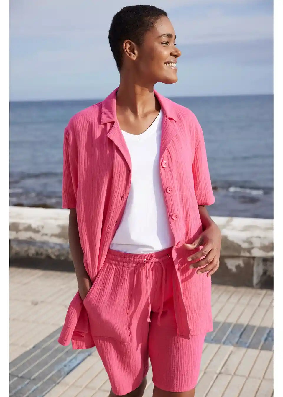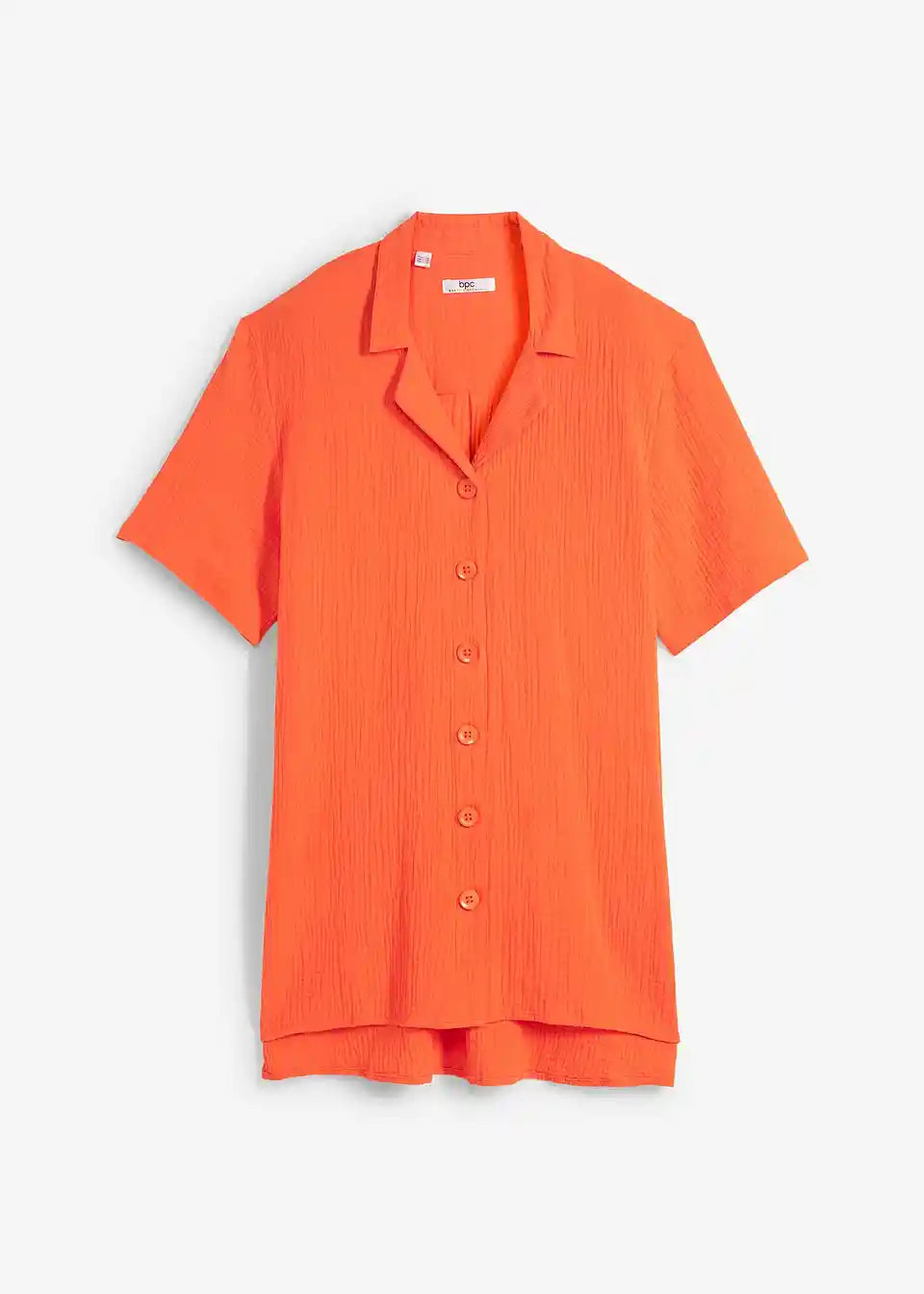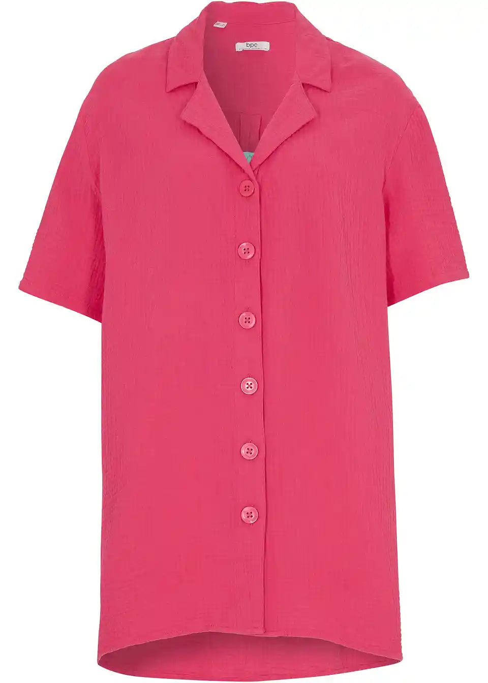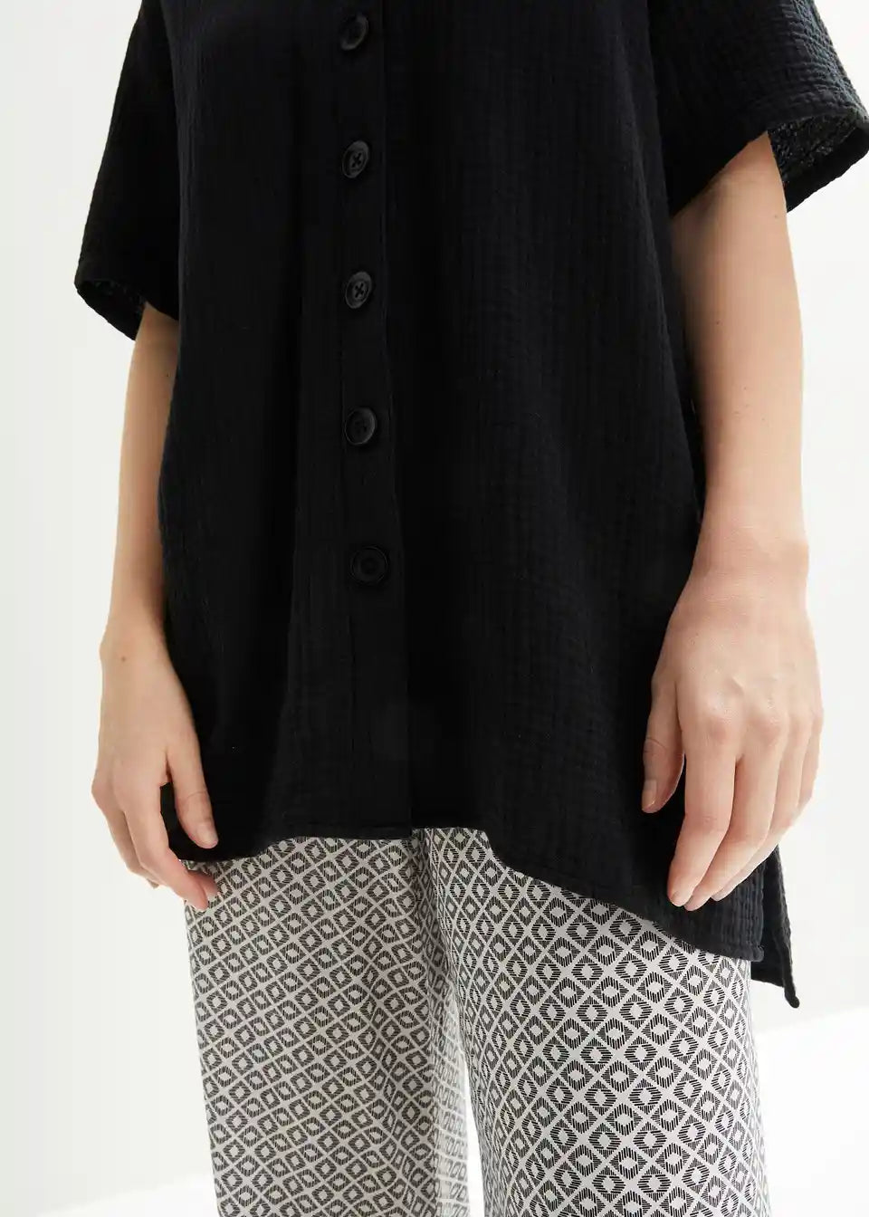 Dolga srajca z letvijo z gumbi in kratkimi rokavi iz muslina