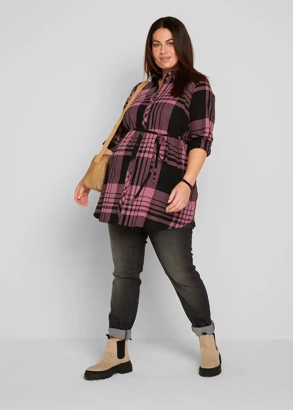 Dolgo krojena, karirasta srajčna bluza iz čistega bombaža za čas med nosečnostjo in po njej z dovolj prostora za rastoči trebuh. Popolna zapenjanje z gumbi omogoča enostavno dojenje in udobno oblačenje ter slačenje. Z odstranljivim pasom za zavezovanje.