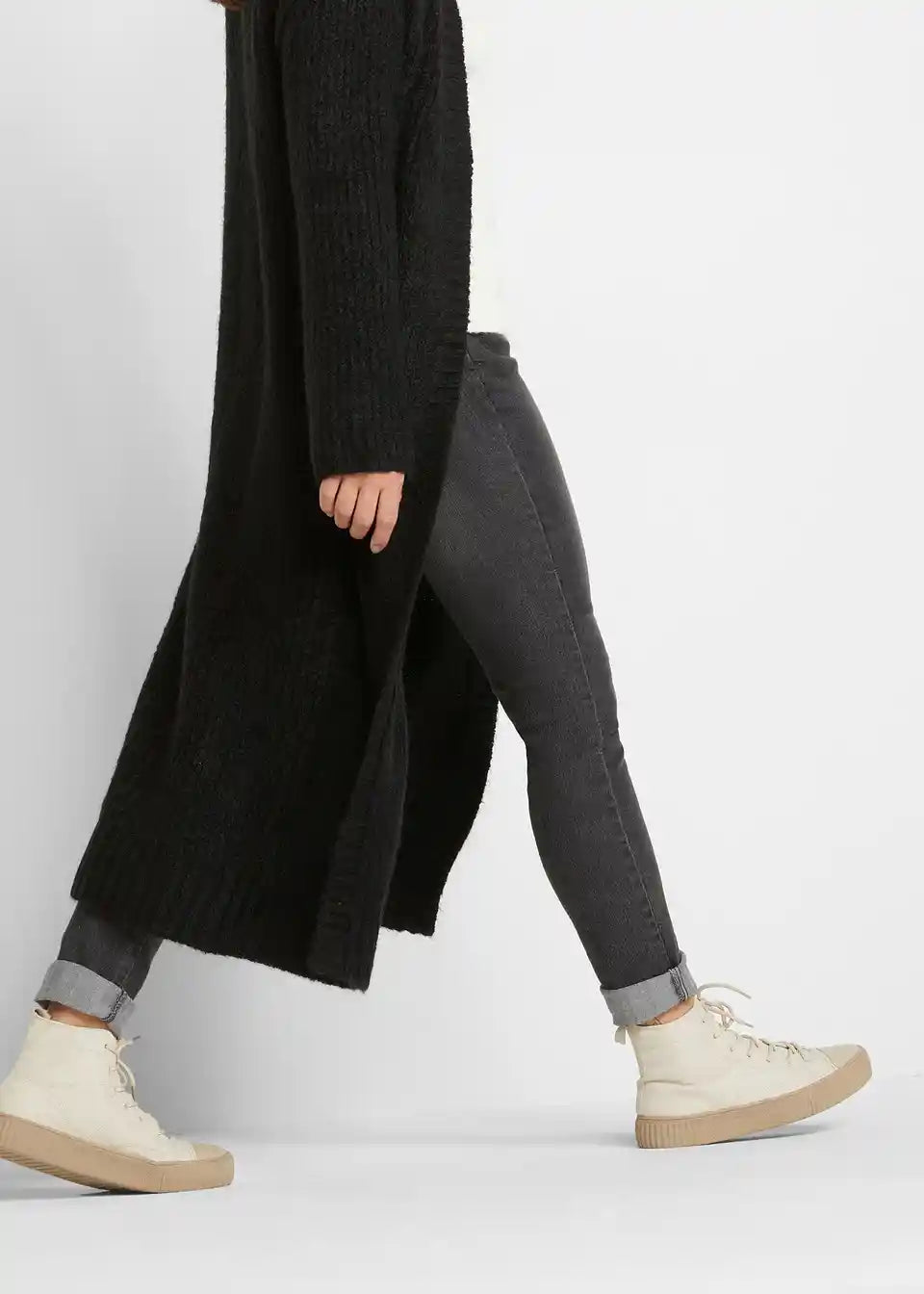 Dolgo krojen pleteni plašč v modnem oversized videzu
