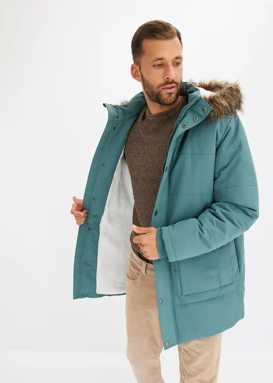 Lep prešit zimski parka s teddy podlogo na telesu in v kapuci, pralno v pralnem stroju