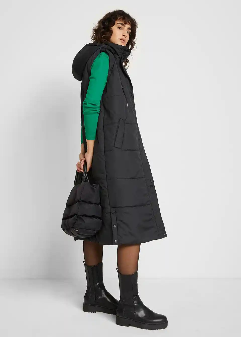 Dolg prešit telovnik s kapuco in stranskimi razporki