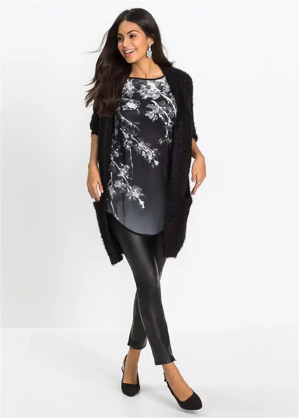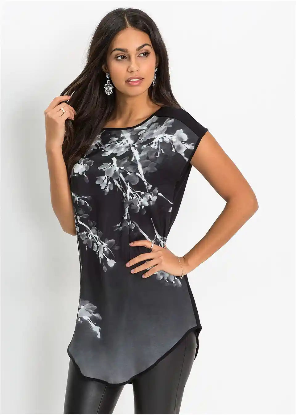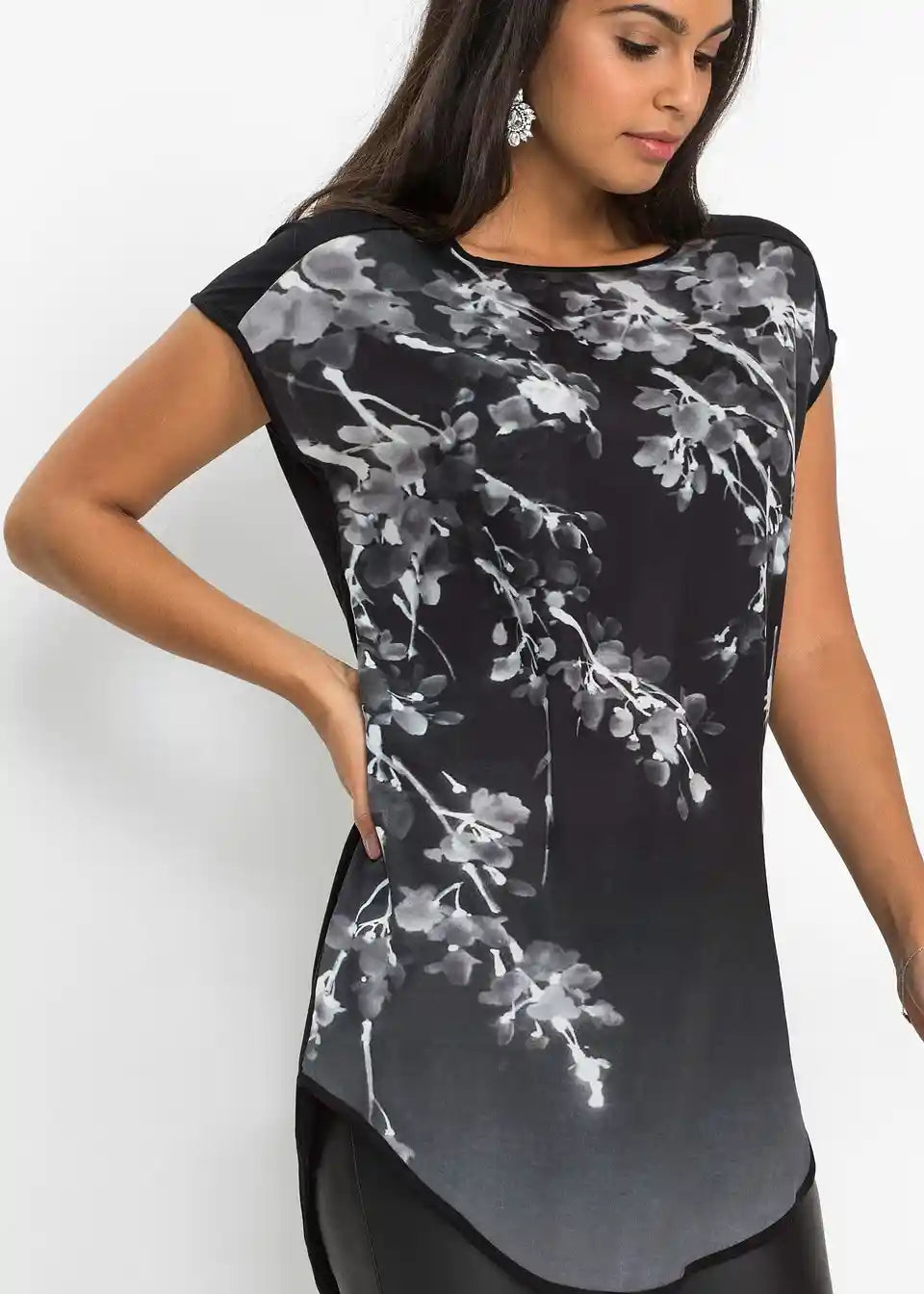 Natisnjena dolga srajca z enobarvnim hrbtnim delom