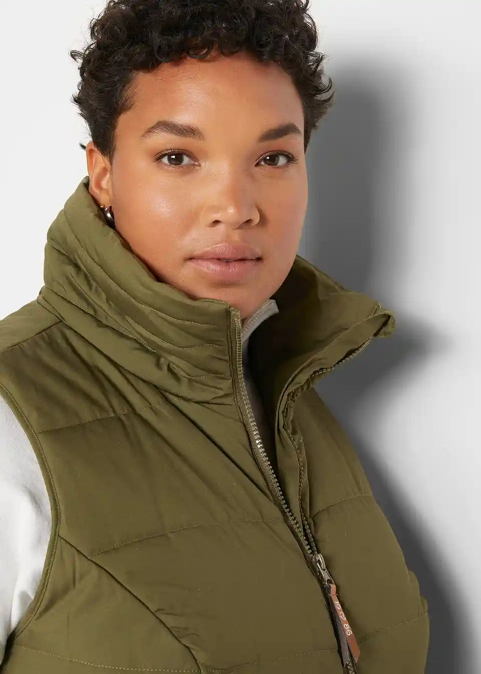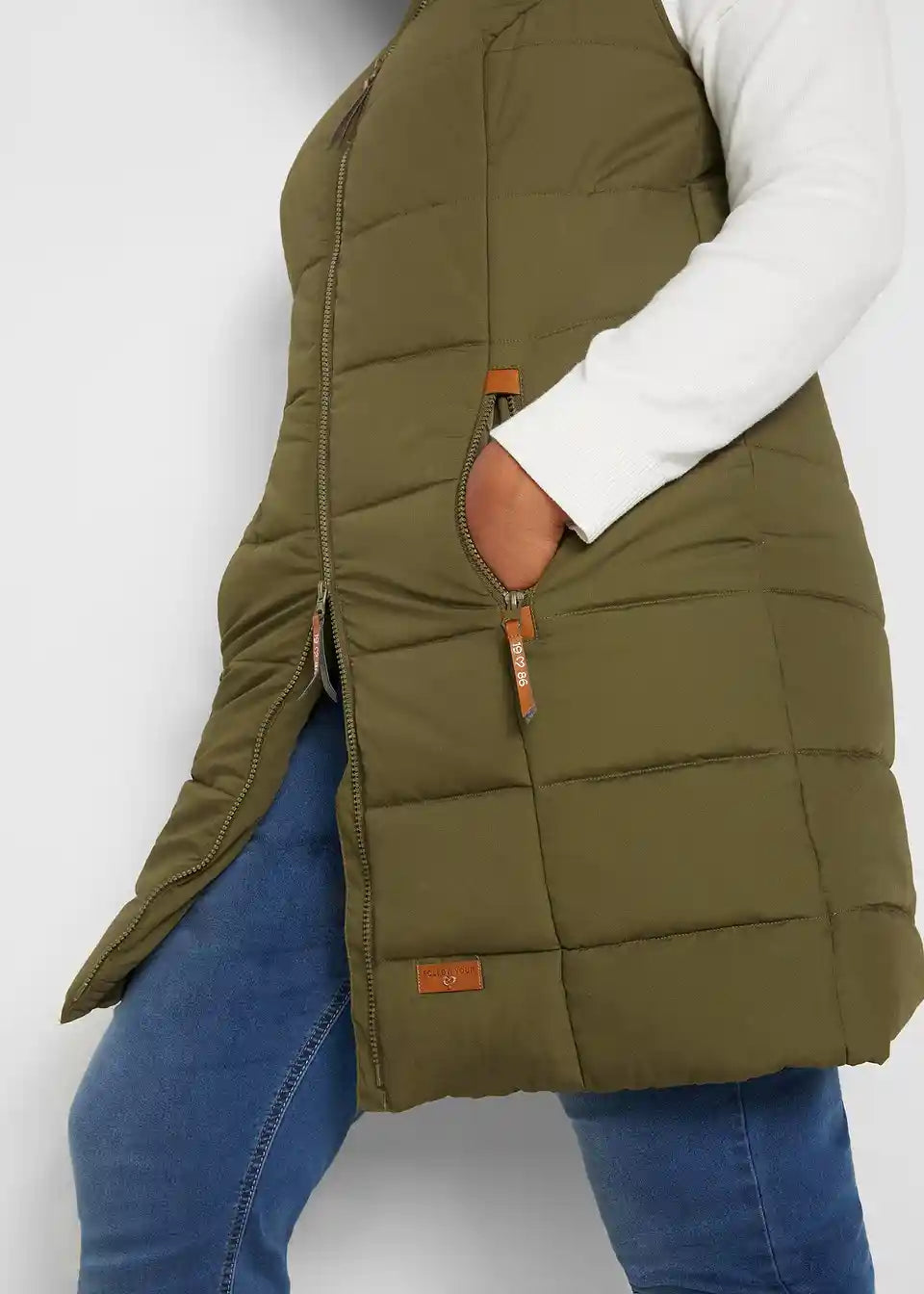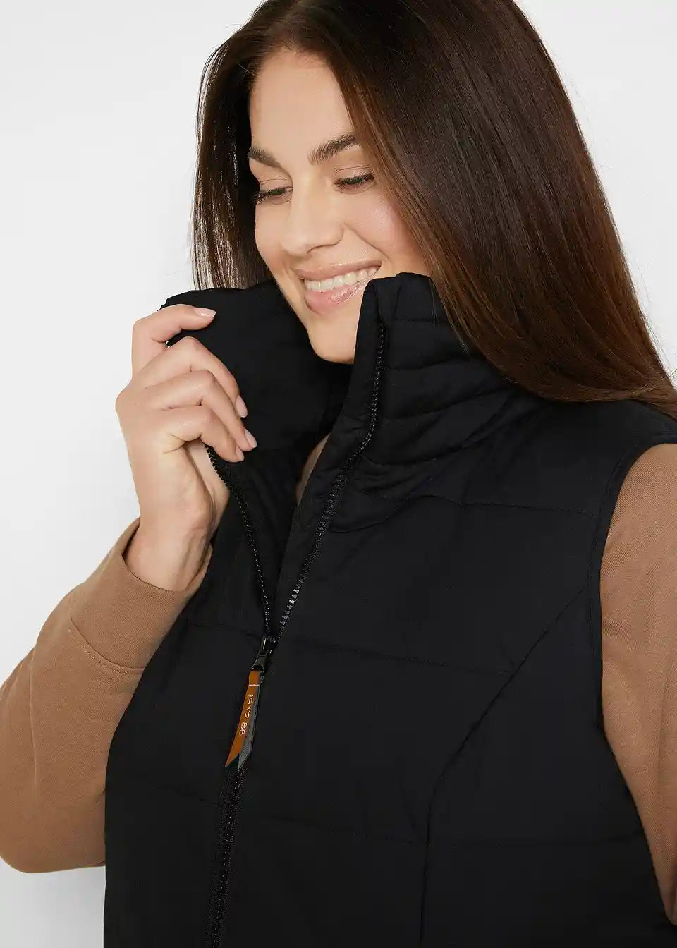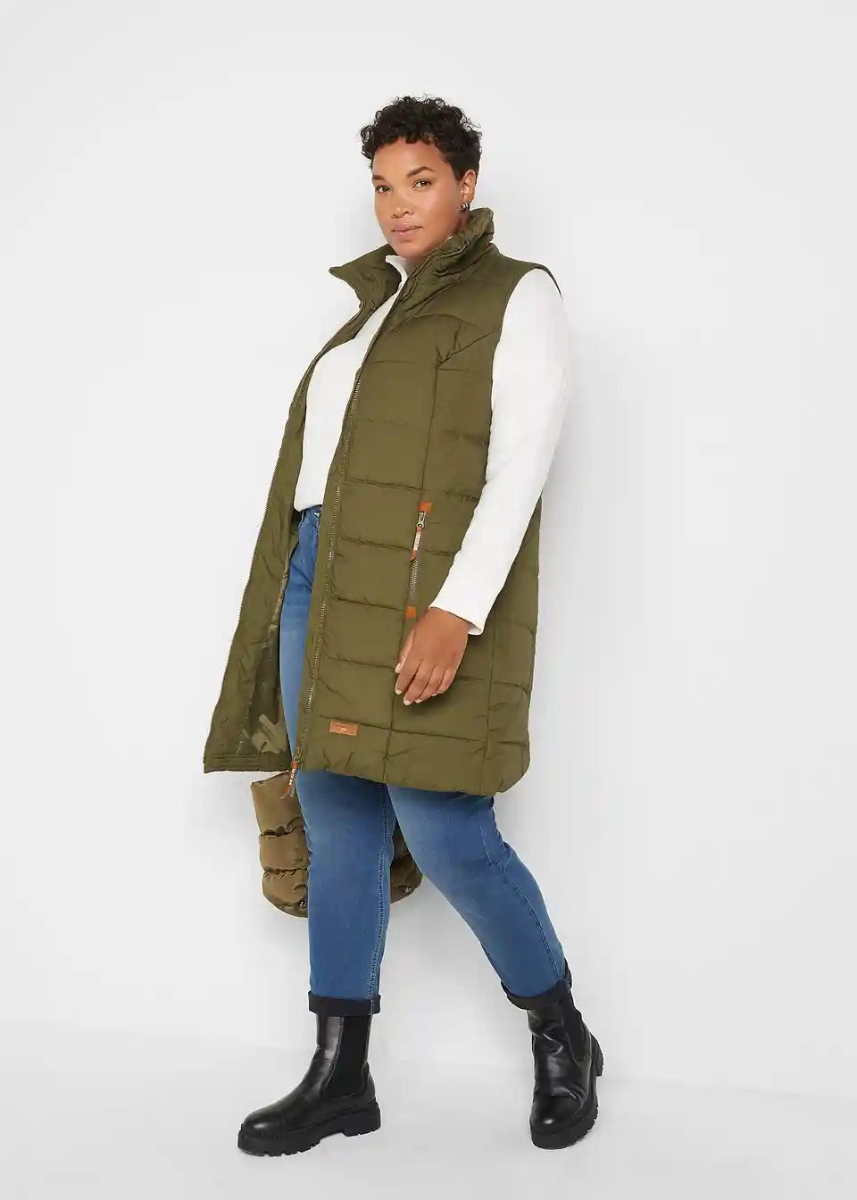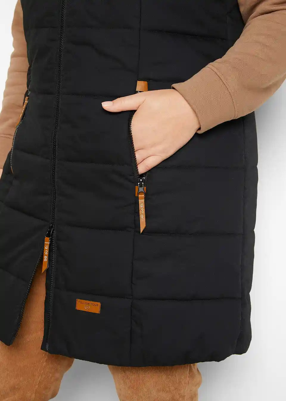 Praktičen, podložen dolg telovnik z stoječim ovratnikom