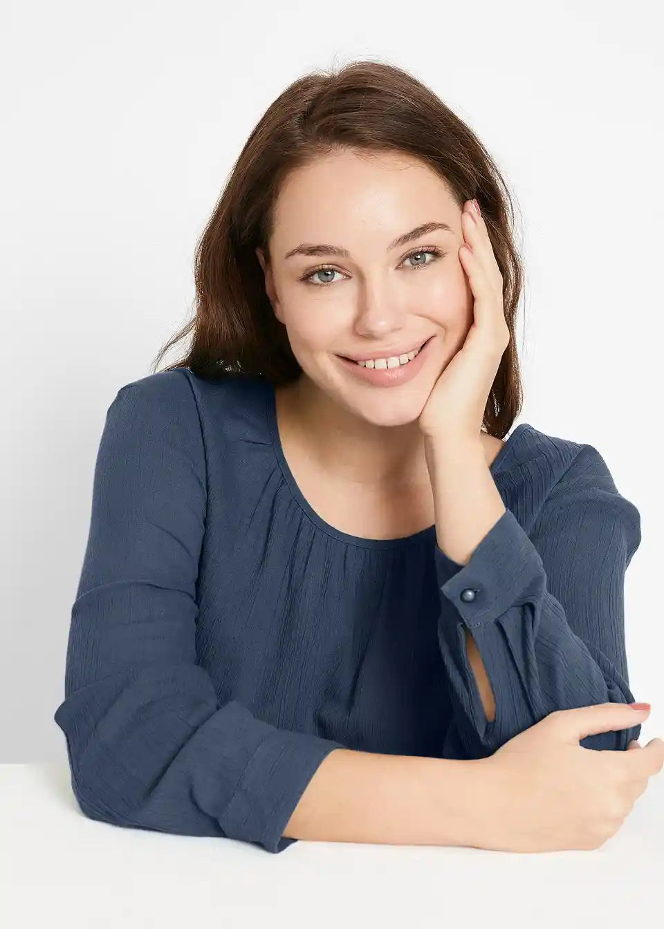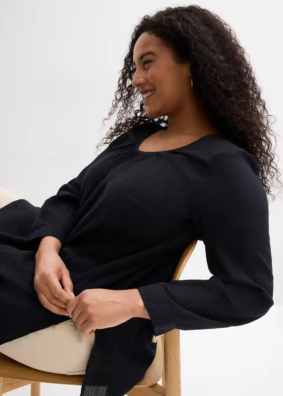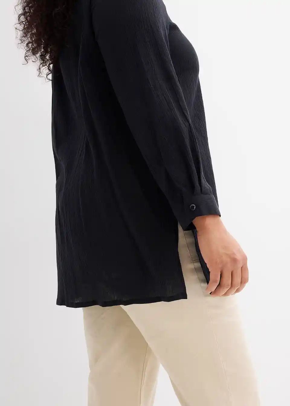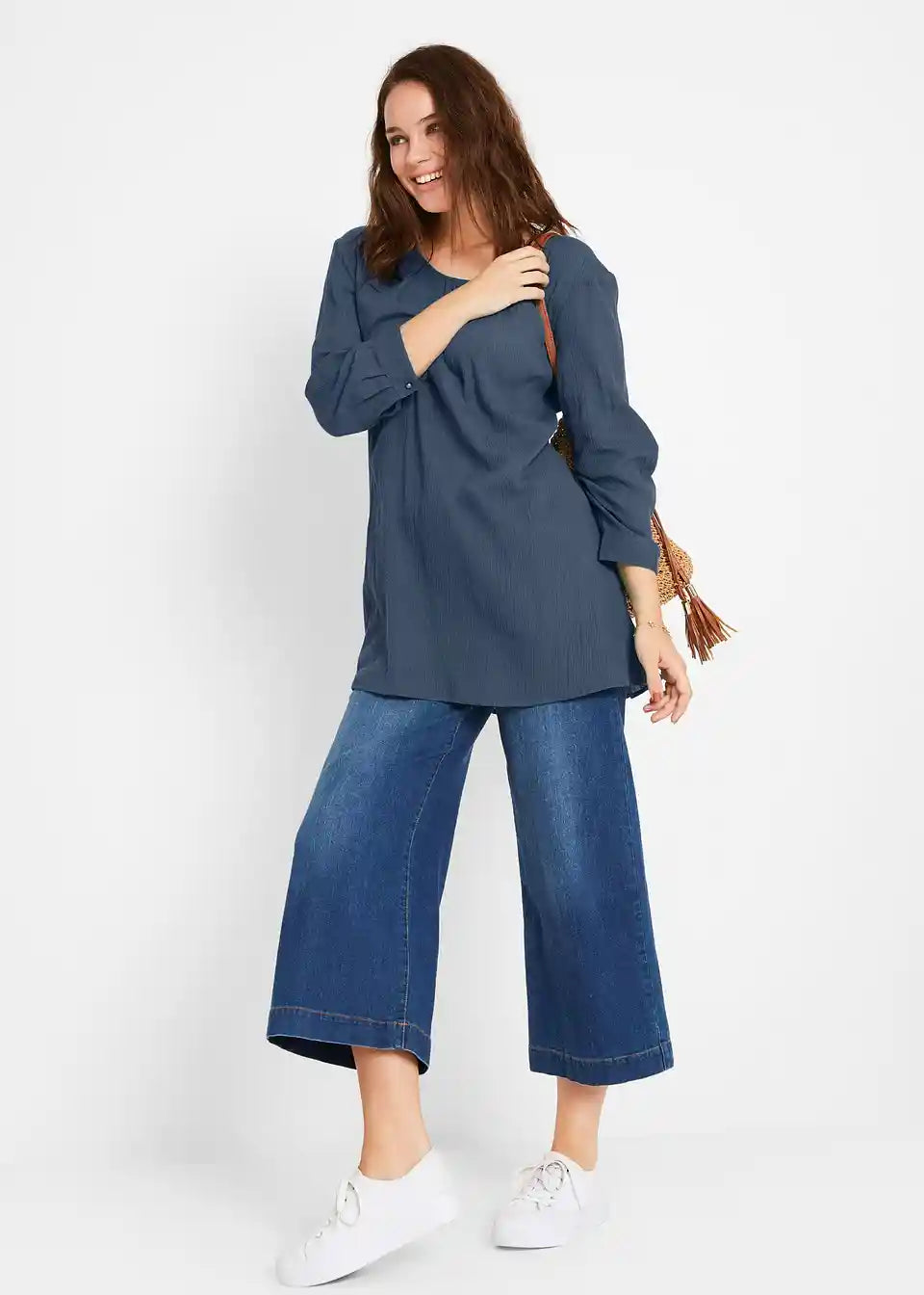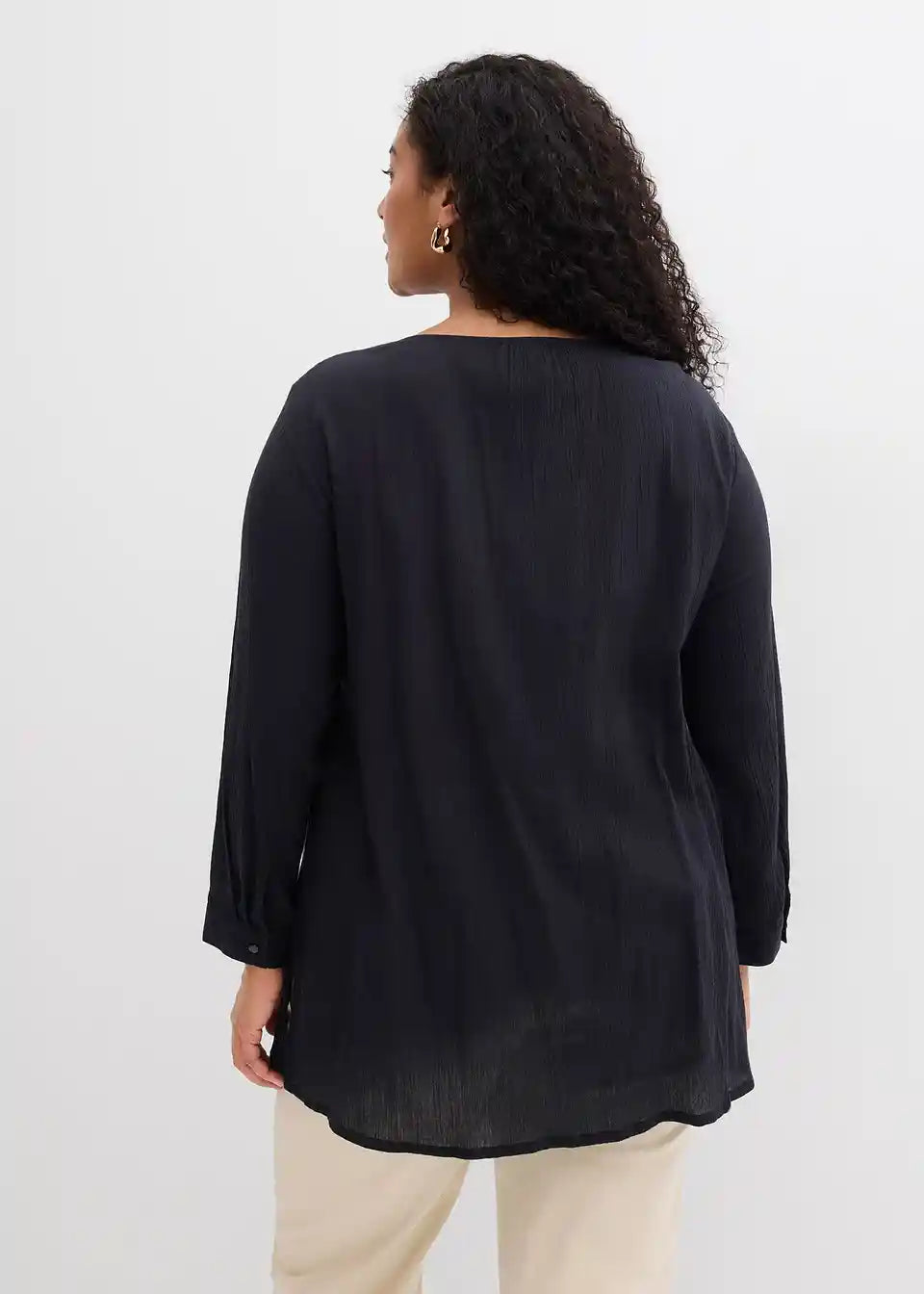 Po telesu padajoča dolga tunika iz bombaža s 7/8-rokavi