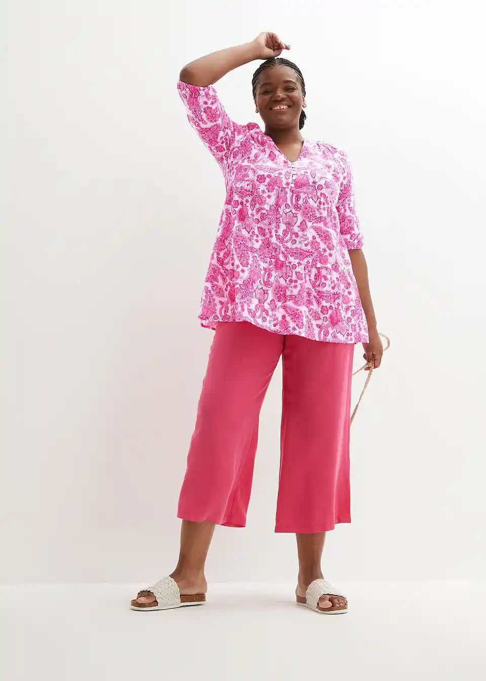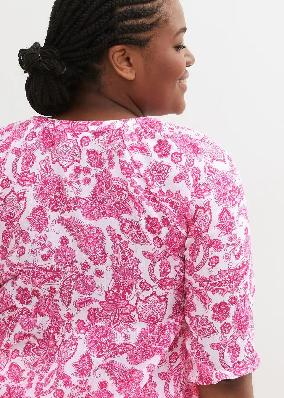 Mehka bluza iz bombažnega krep materiala z rožastim potiskom lepo obdaja rokave