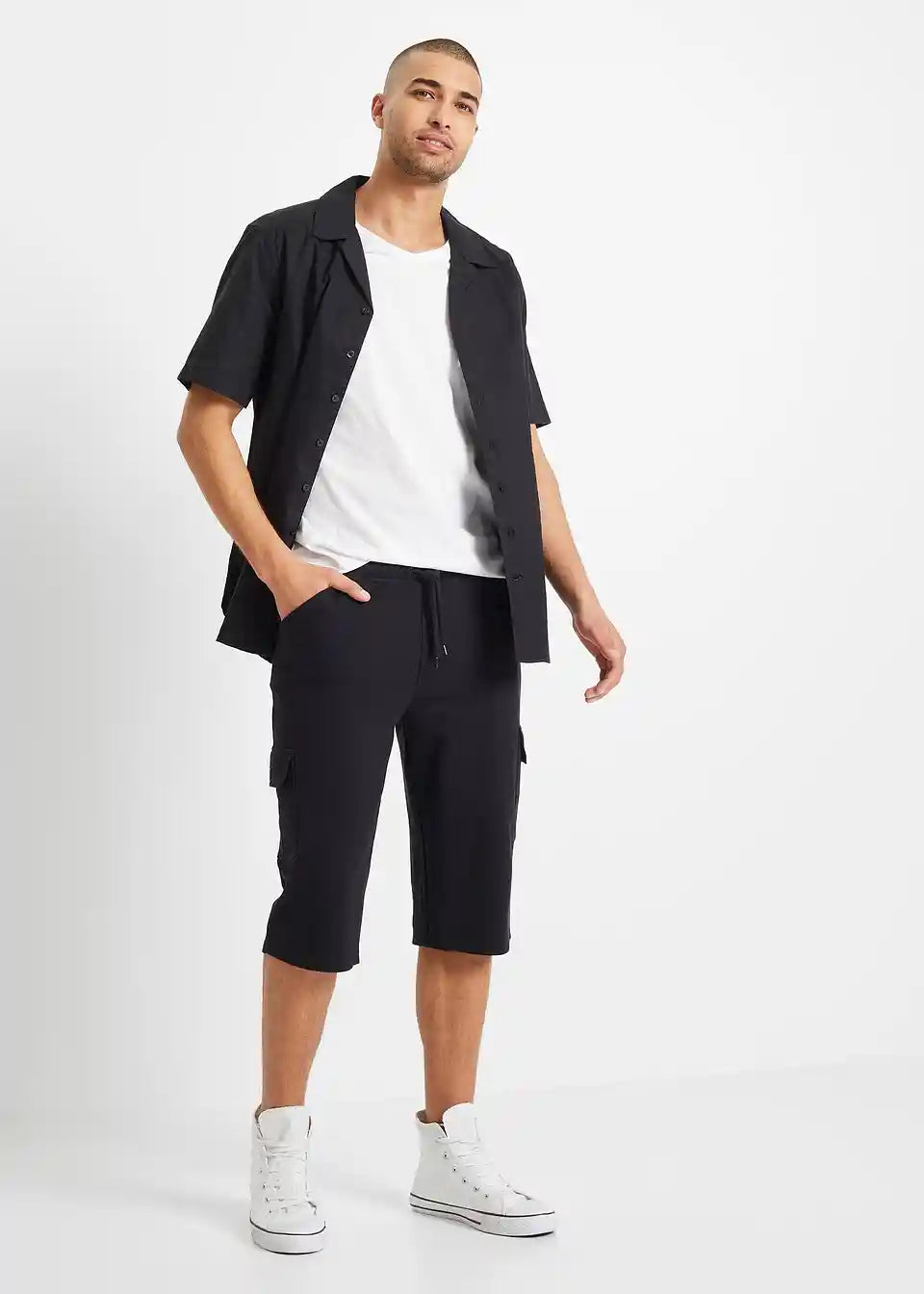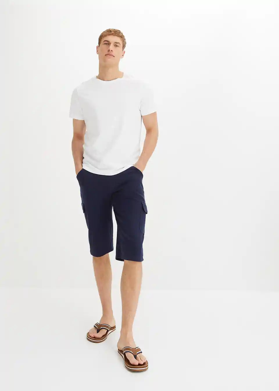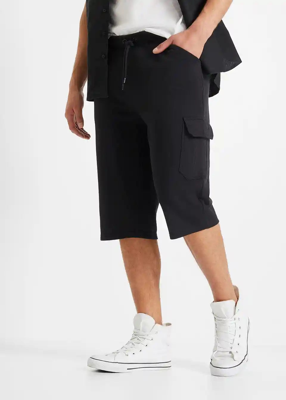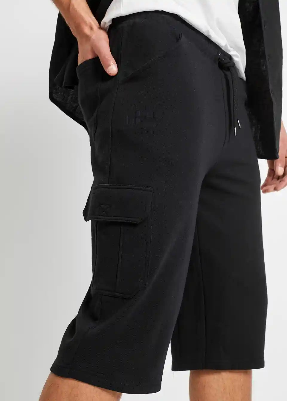 Daljše bermuda hlače iz trikoja s cargo žepi v klasičnem kroju