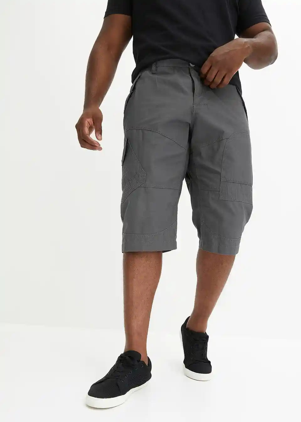 Te trendovske moške dolge bermude izstopajo z mnogimi žepi in šivi. Sprednji žepi z oblikovani z zavihkom in gumbom. Ob strani na nogi sta nameščena še dva dodatna žepa: eden z zavihkom in pritisnim gumbom, drugi s stransko zadrgo. Zadnja dva žepa z zavihkoma dopolnjujeta moderni videz kolenskih dolgih bermud v kroju Regular Fit.