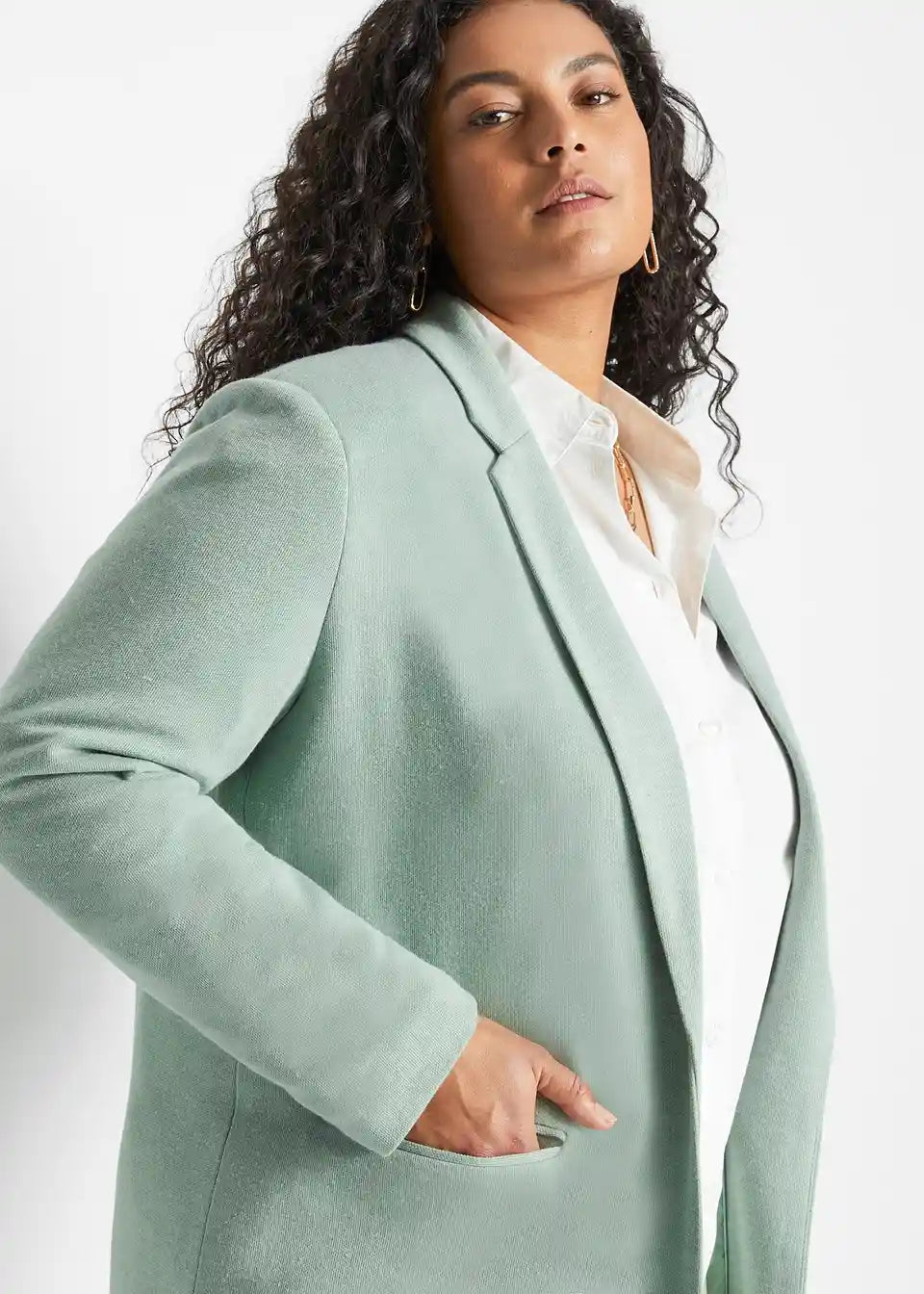 Moden Jersey-blazer z rahlimi podloženimi rameni.