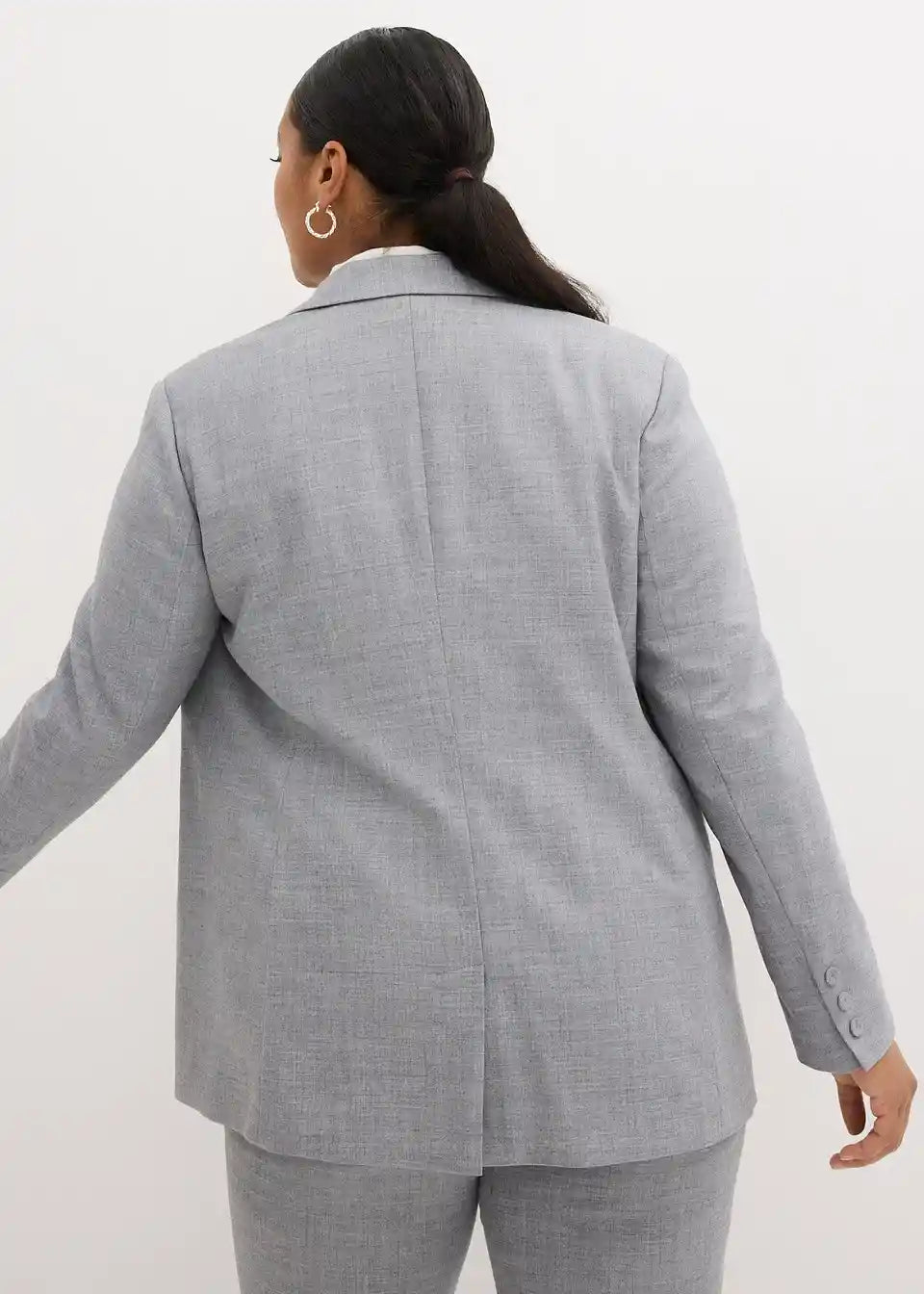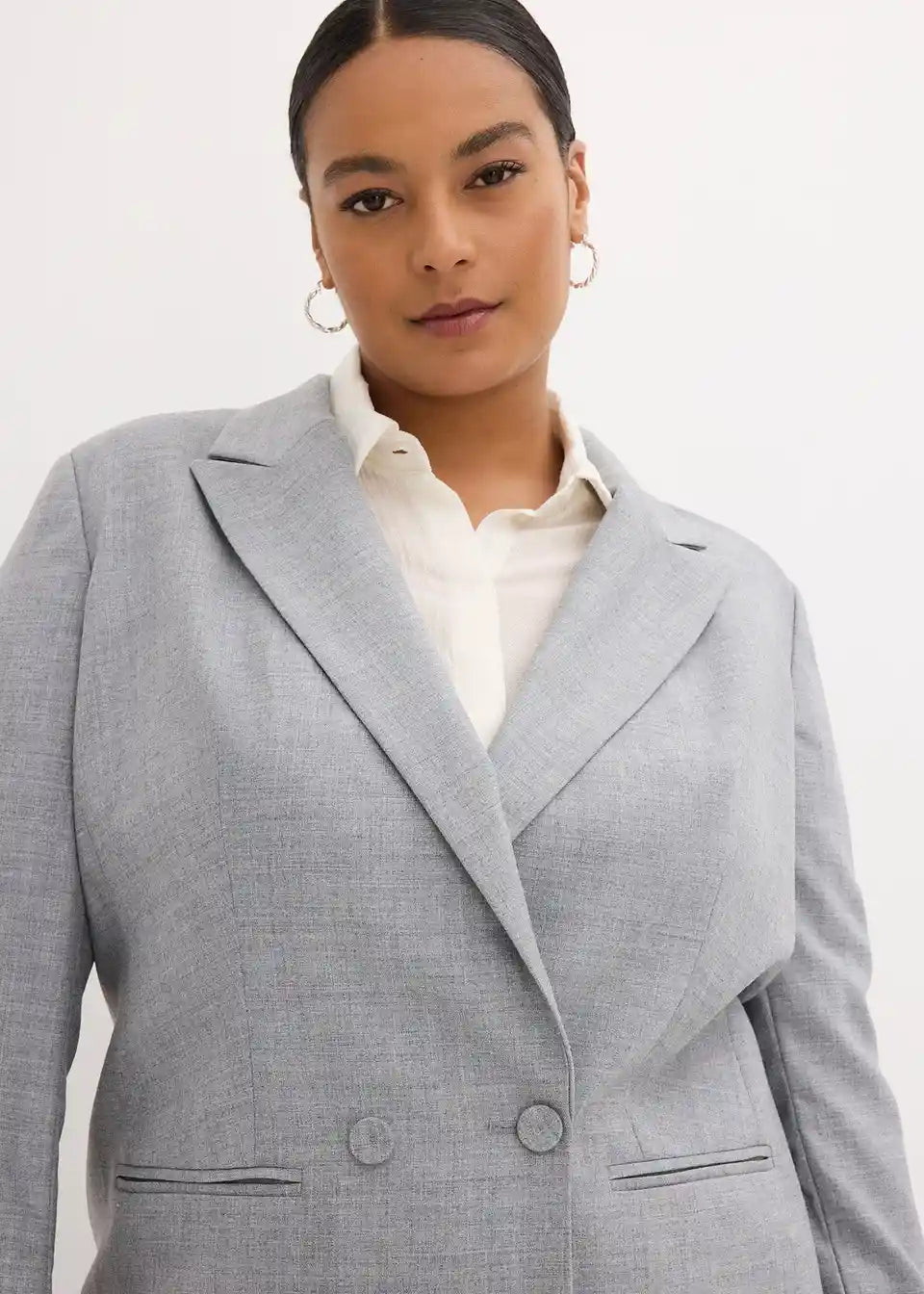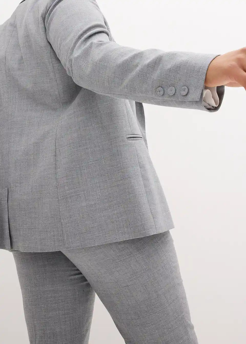 sodoben blazer z ojačanim ramenskim delom iz fine volnene mešanice, s tkanino prekritimi gumbi in žepi na paspuli