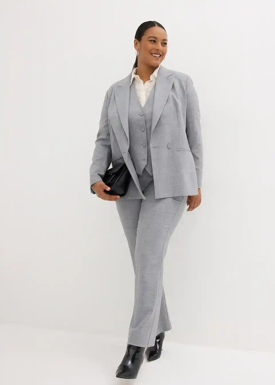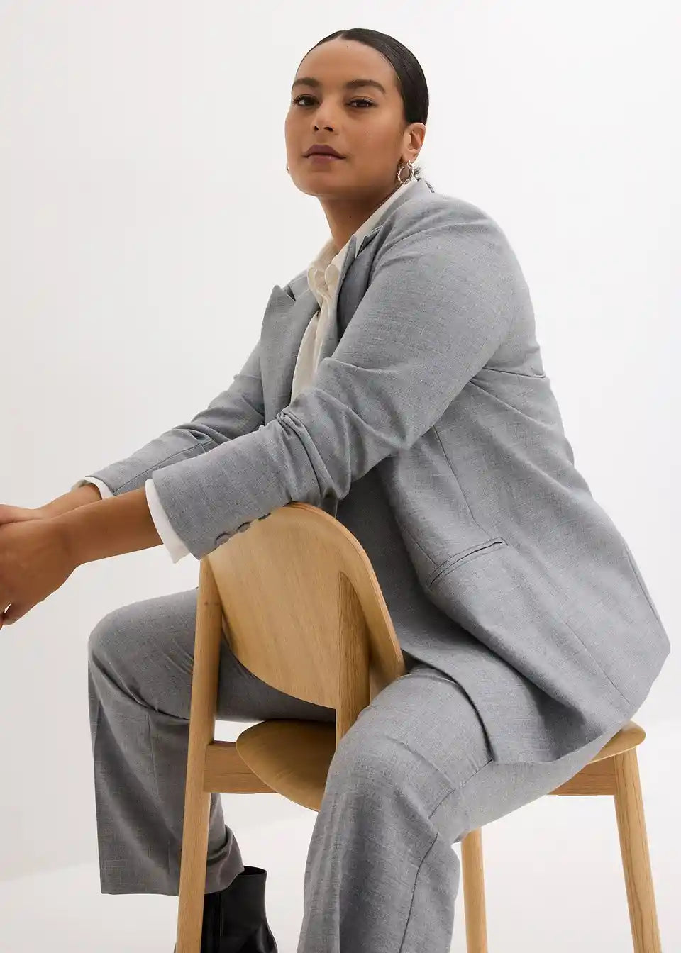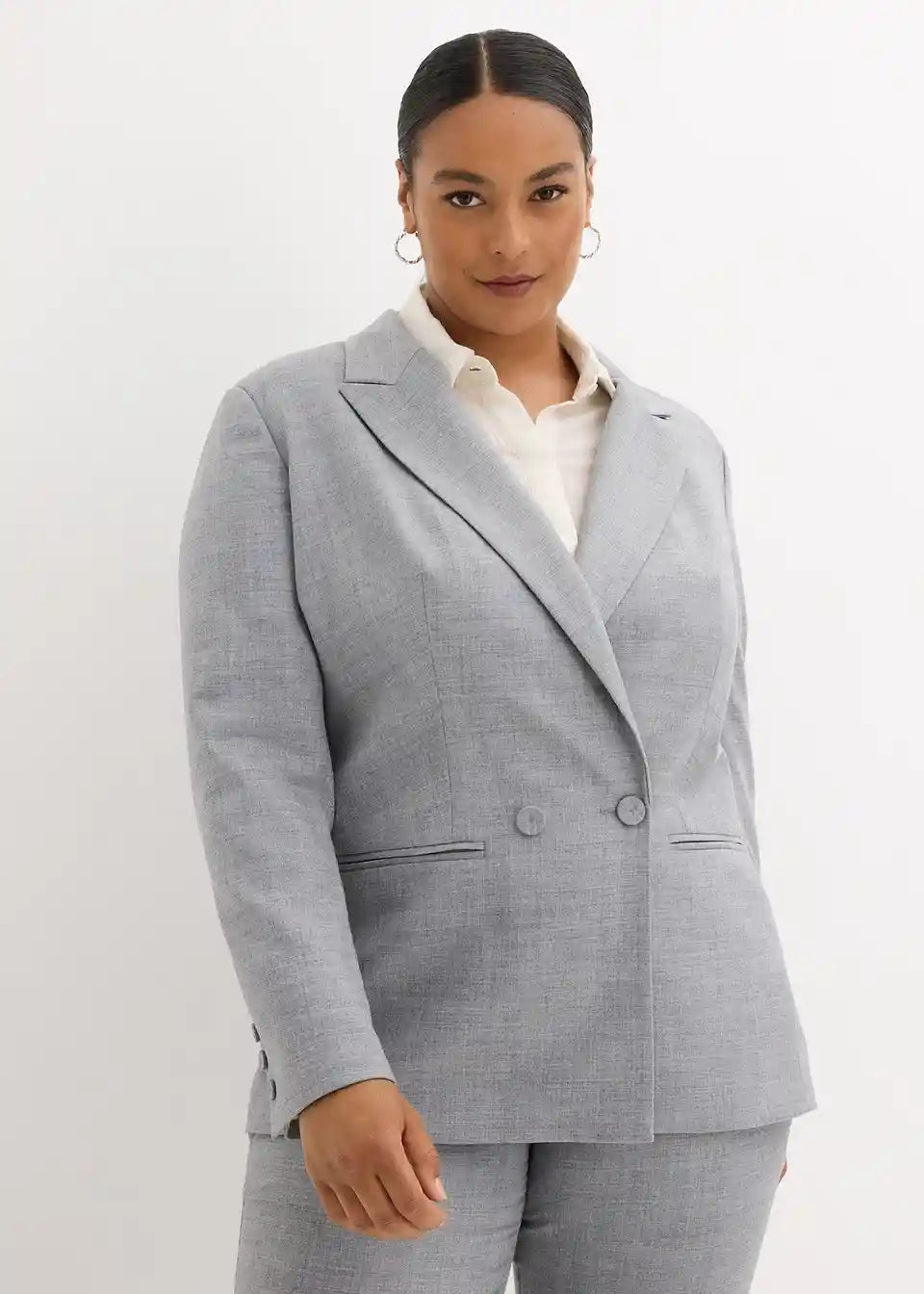 sodoben blazer z ojačanim ramenskim delom iz fine volnene mešanice, s tkanino prekritimi gumbi in žepi na paspuli