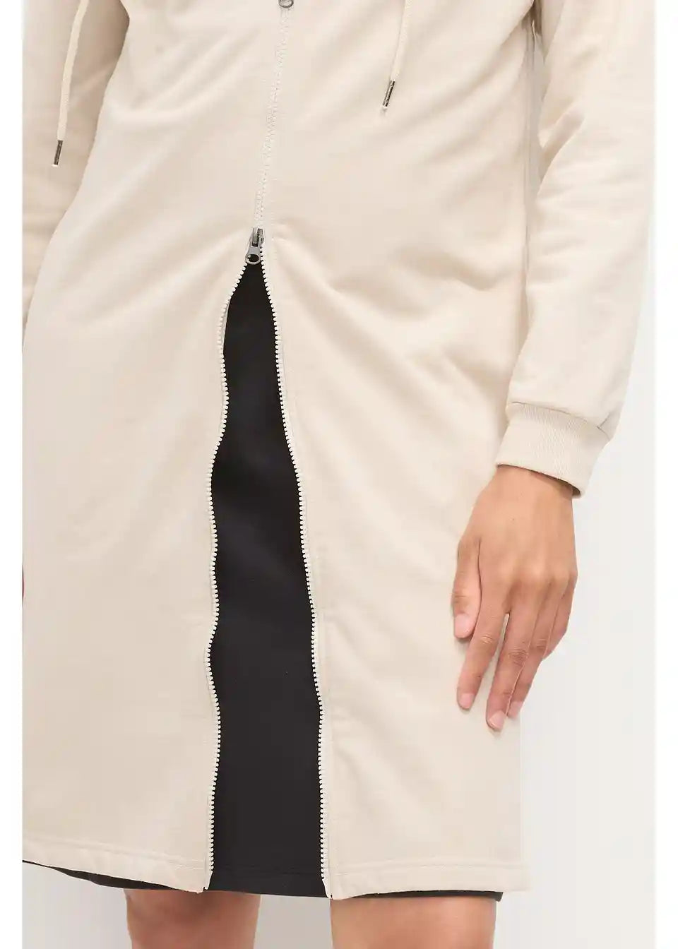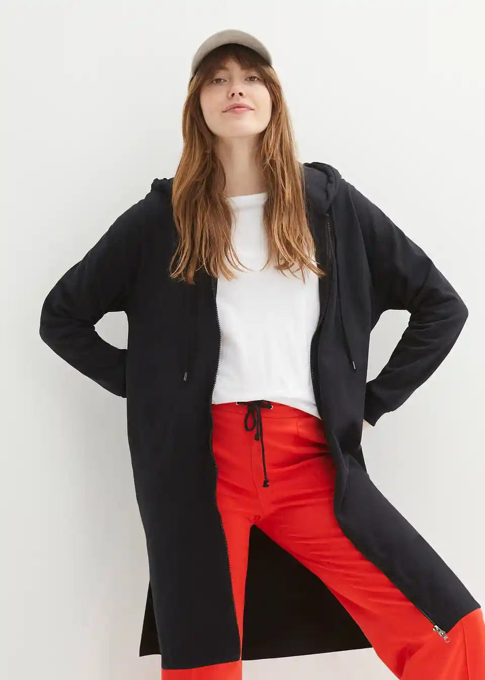 Dolga jopica s kapuco in dolgimi stranskimi razporki za več svobode gibanja