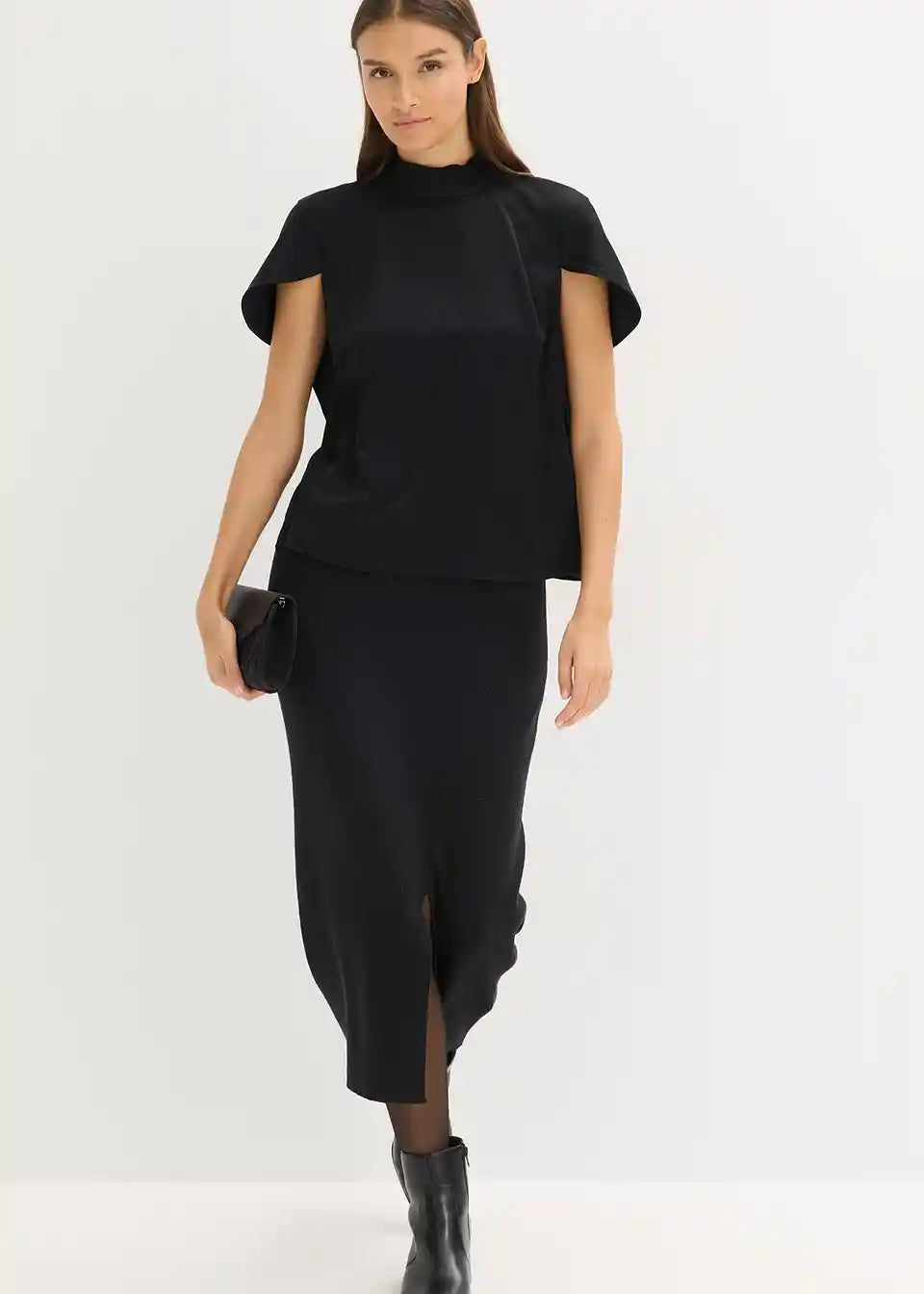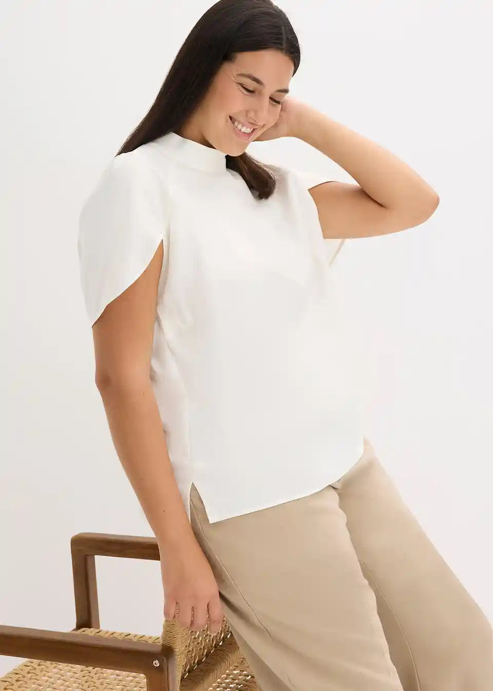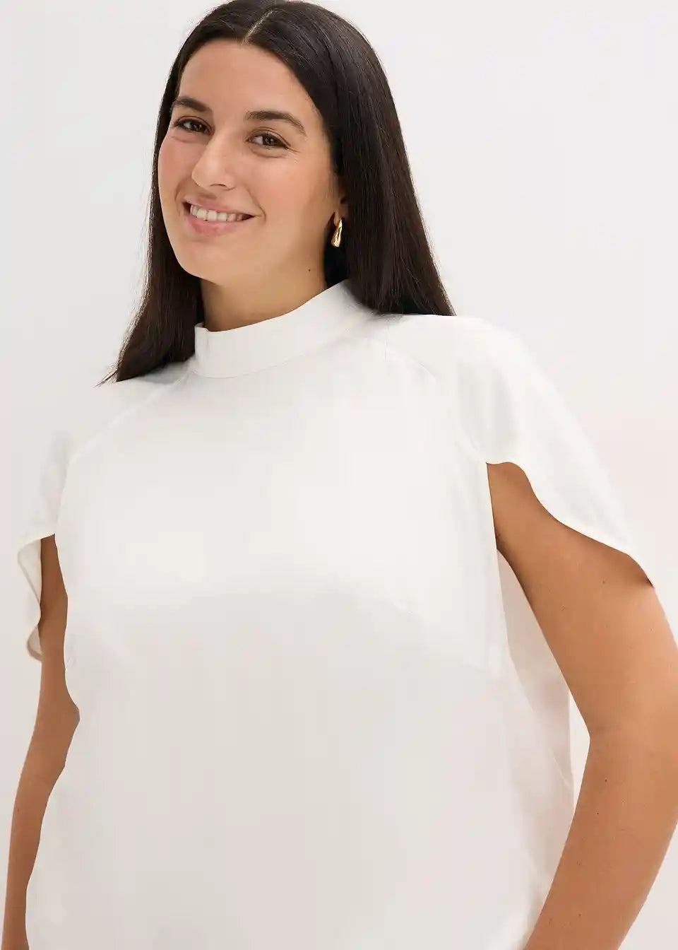 Elegantna bluza s kratkimi rokavi iz sijočega satena