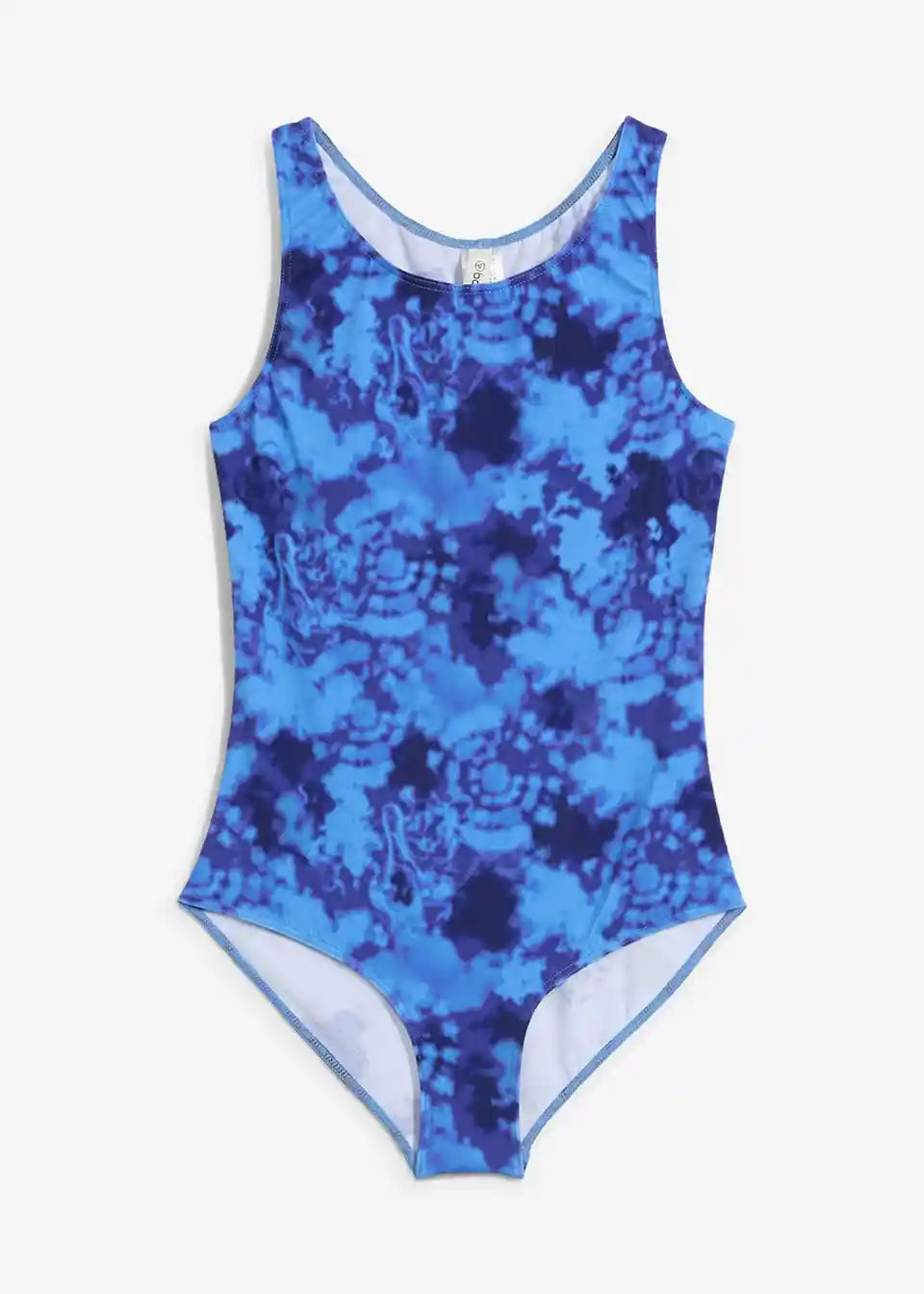 Športne enodelne kopalke z izrezom na hrbtu in batik vzorcem