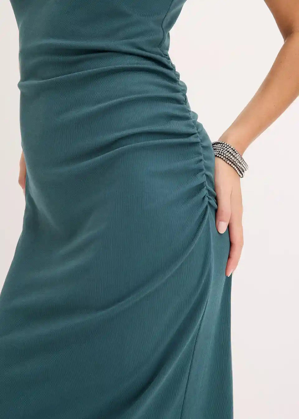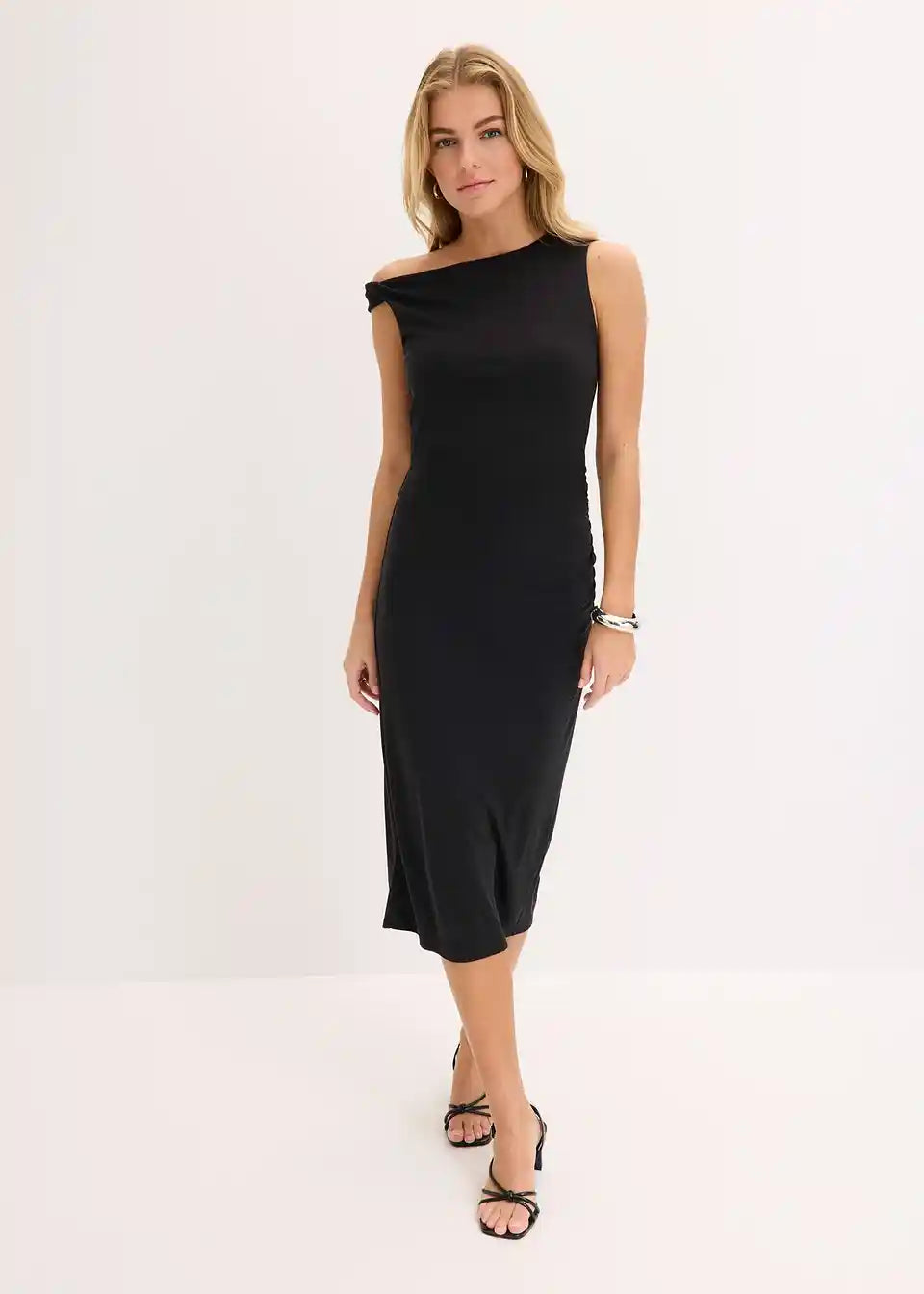 Obleka z odkrito ramo v po telesu oprijetem kroju