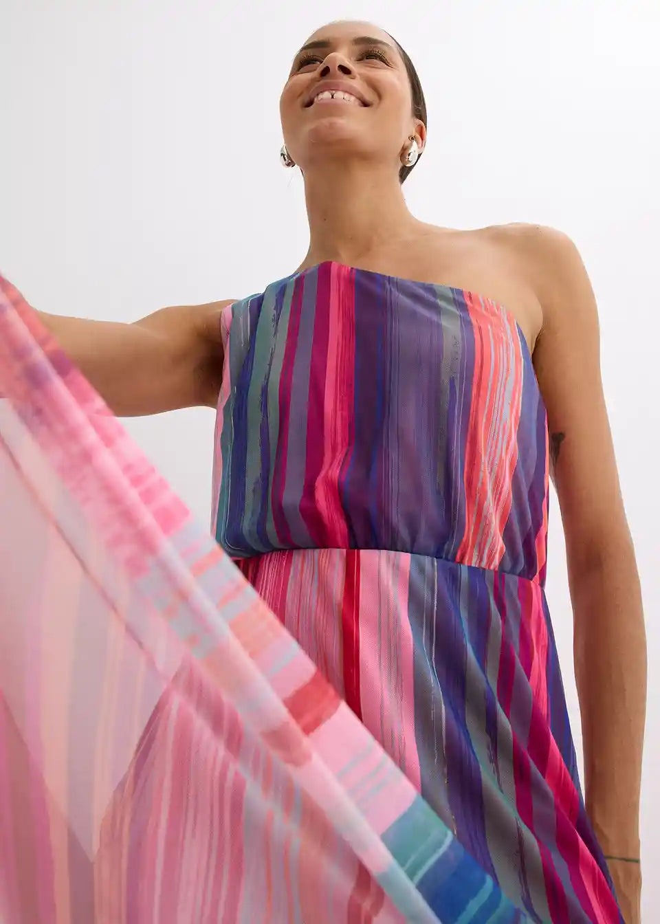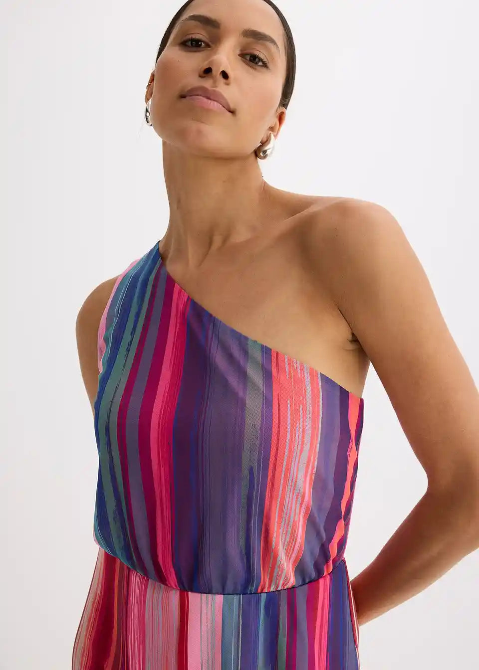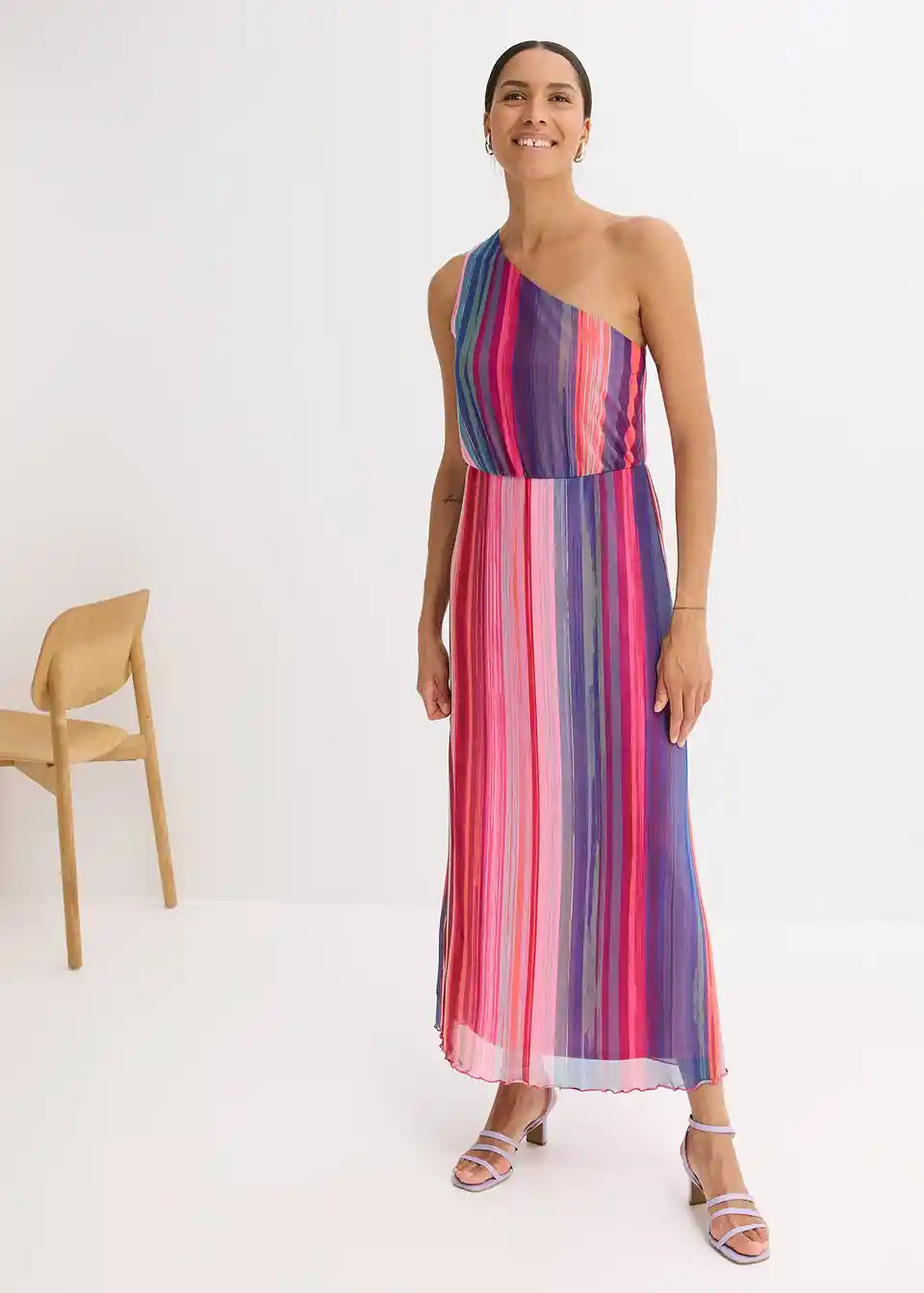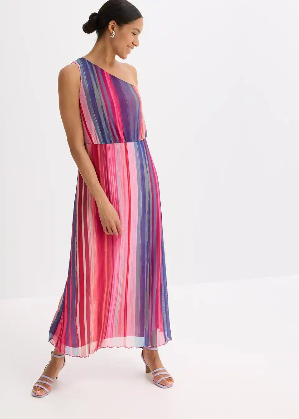 modno potiskano enoramensko obleko v maksi dolžini