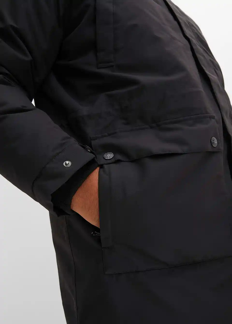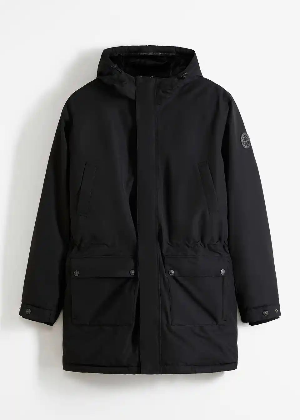 Modni termo parka, sestavljen iz trde lupinaste jakne in notranje prešite jakne. Parka je bila izdelana z recikliranim puhom in je notranje prešita. Poleg tega ima parka več funkcij.