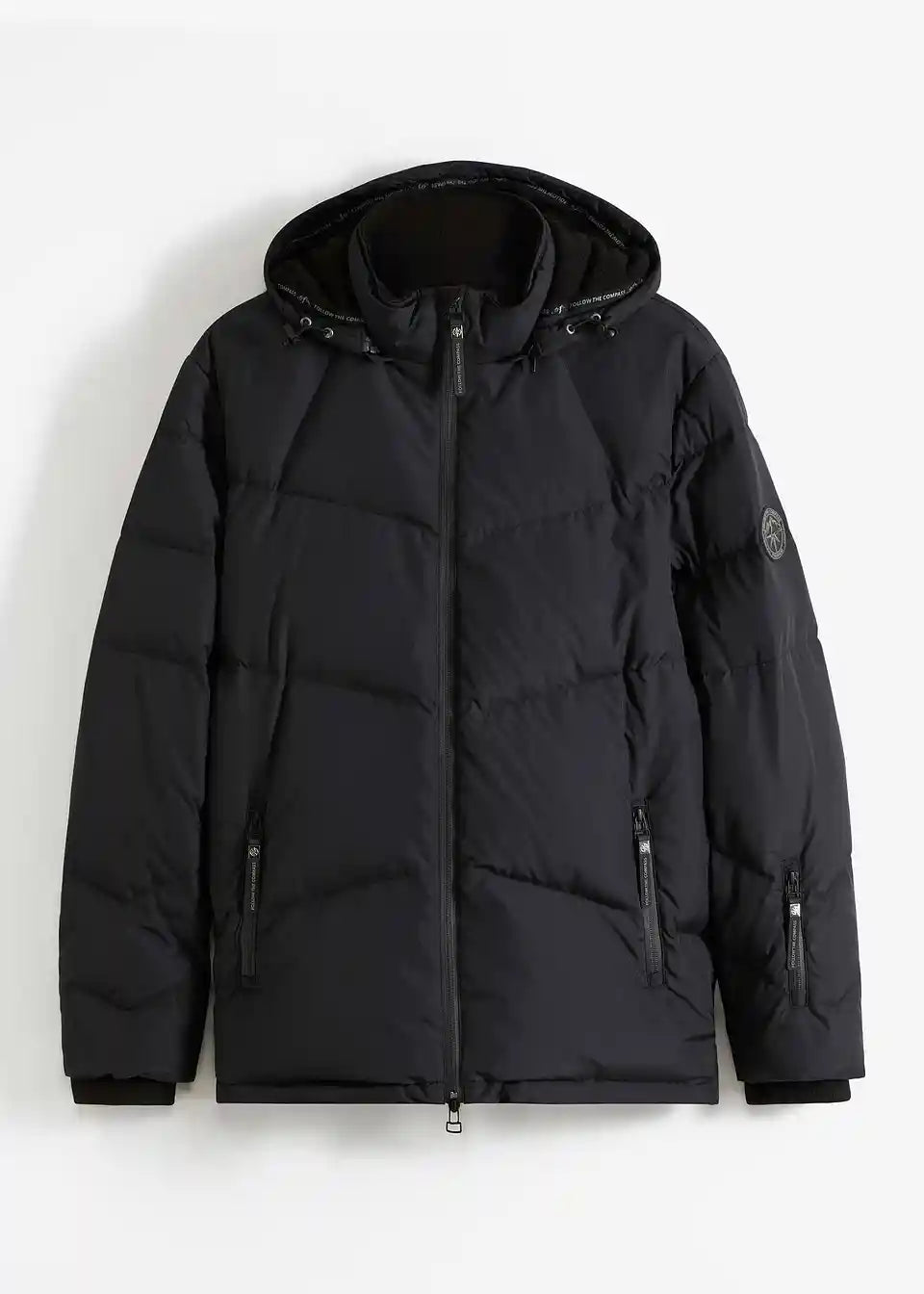 Material:zgornji material: 66% poliester, 34% poliester (recikliran), podloga: 100% poliester (recikliran), podloga kapuce: 94% poliester, 6% elastan, vatiranje: 80% puh, 20% perje