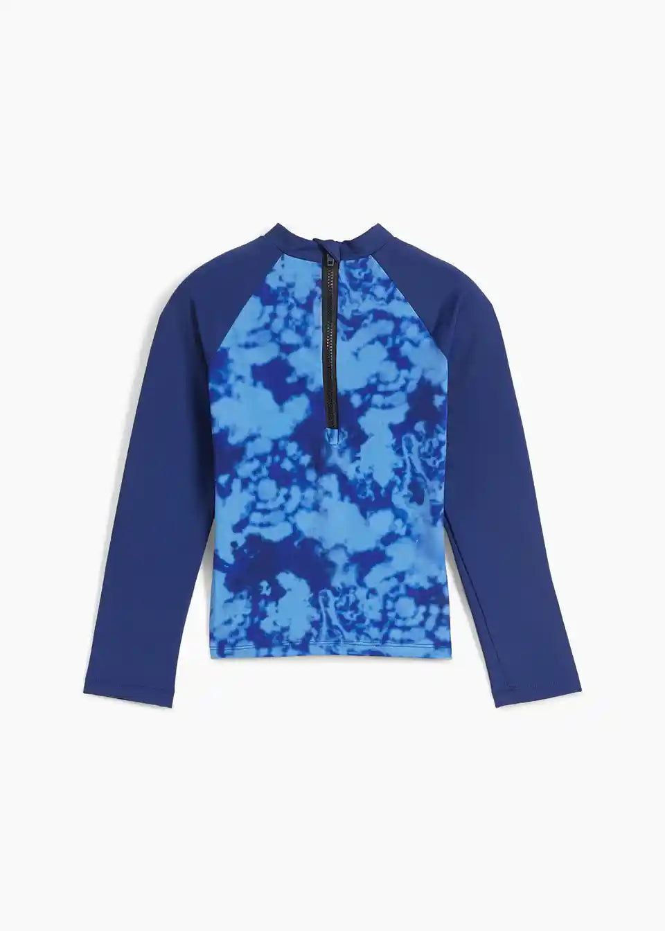 Fantovska kopalna majica z batik rokavi in zadrgo zadaj.